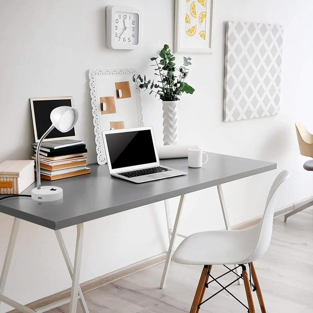 MaxLite LED Desk Lamp with USB Charging Port, White Desk Lamp, Adjustable Neck, On/Off Switch, Modern Table Lamp for Reading, Work or School, Warm Gentle Light