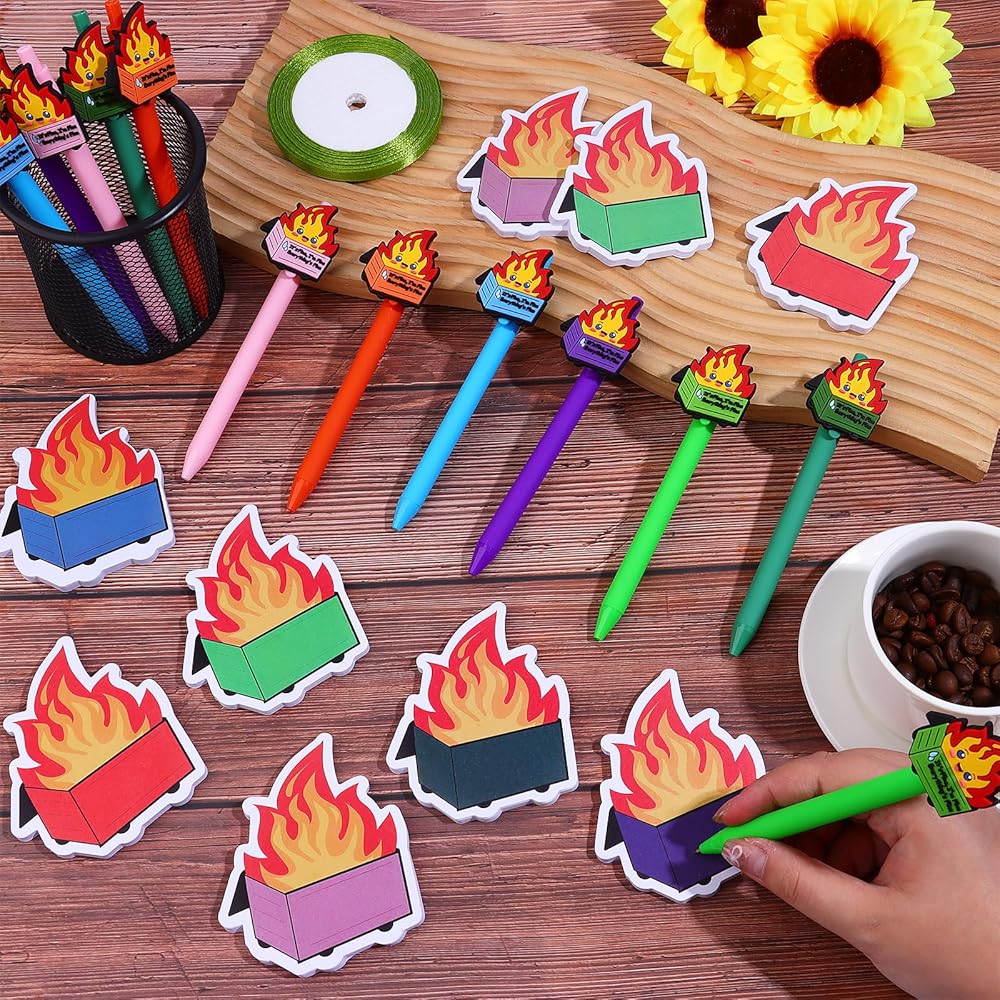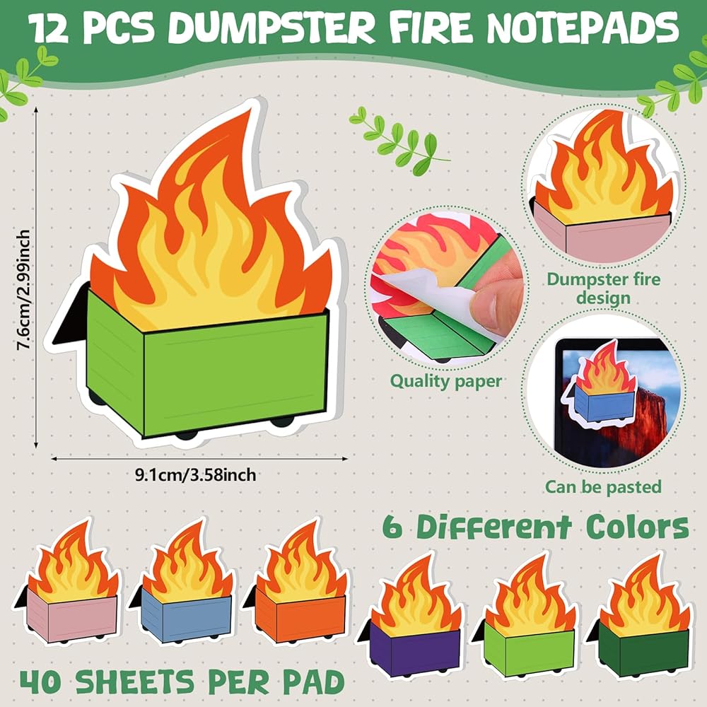 12Sets شكرًا لك هدايا FUMPSTER FIRE ARALS يمكن أن تطلق النار على الملاحظات اللاصقة لمستلزمات مكاتب الحريق المكتبي الموظف هدية لدعم عيد الميلاد