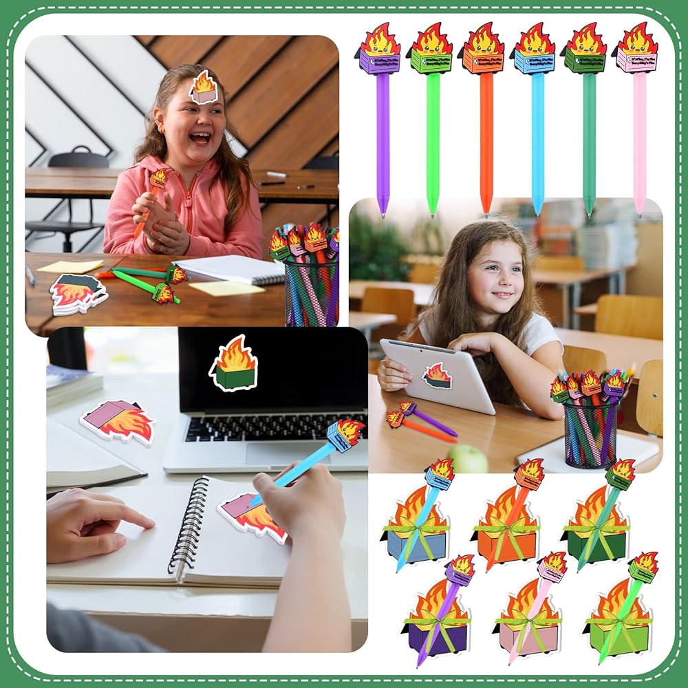 • تفاصيل الحجم: تتميز كل القمامة بإطلاق النار على 40 ورقة من الورق الجودة مع تصميم حريق القمامة المسلية ، بقياس 7.6 × 9.1 سم. تعرض أقلام حافة Fire Fire ، التي تبلغ مساحتها 14 سم ، نفس عزر النار الغريب الافتراضي ويوفر أداءً سلسًا للكتابة. تتضمن المجموعة شريطًا مزخرفًا يبلغ طوله 19 قدمًا للتغليف أو العرض الإبداعي