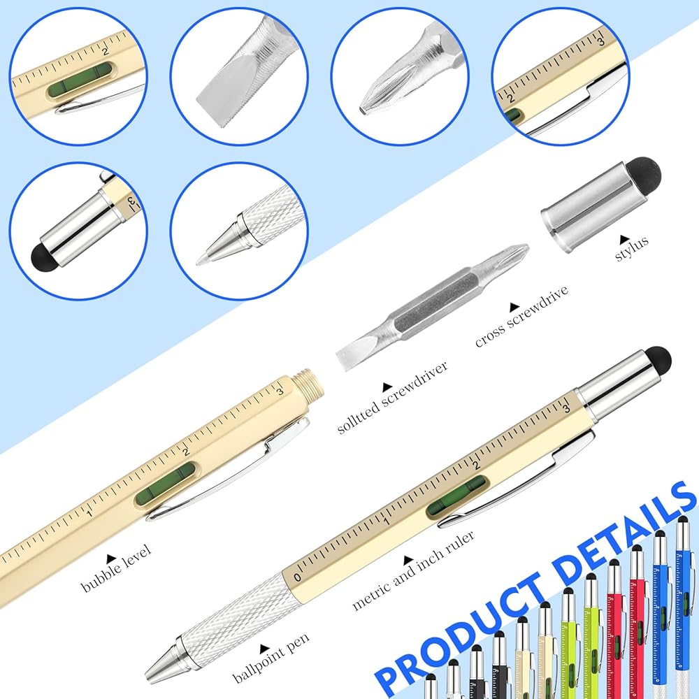 The Father's Day tool pen body is made of plastic. The keychain is made of stainless steels. Which is sturdy and reliable, not easy to deform, polished with a smooth surface, no odor, so you can rest assured to use