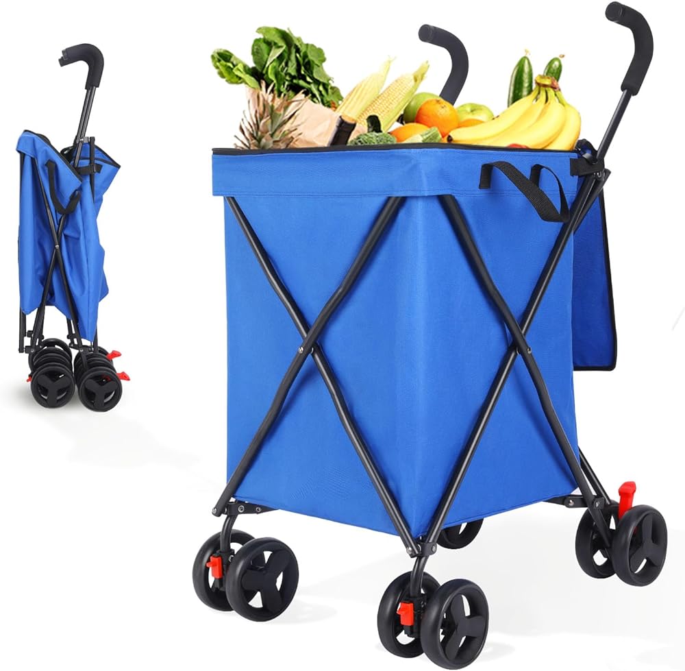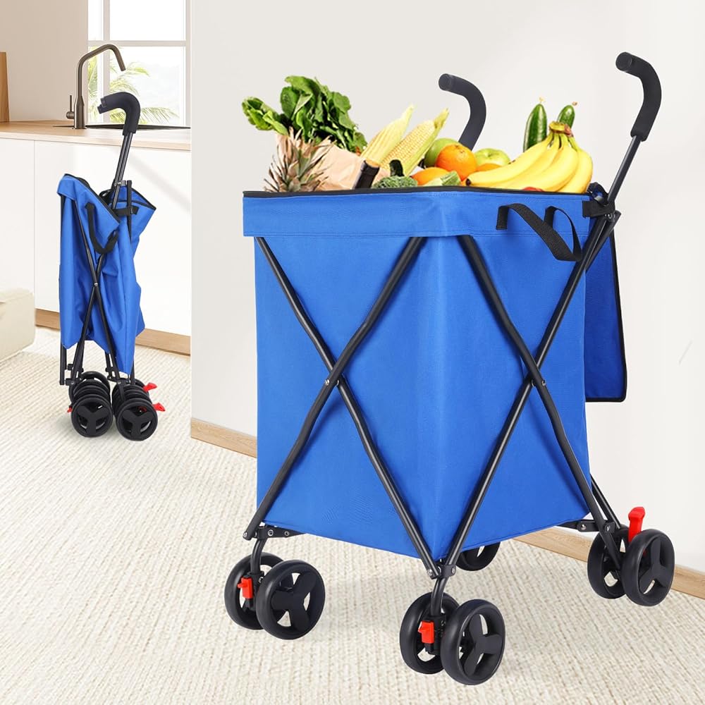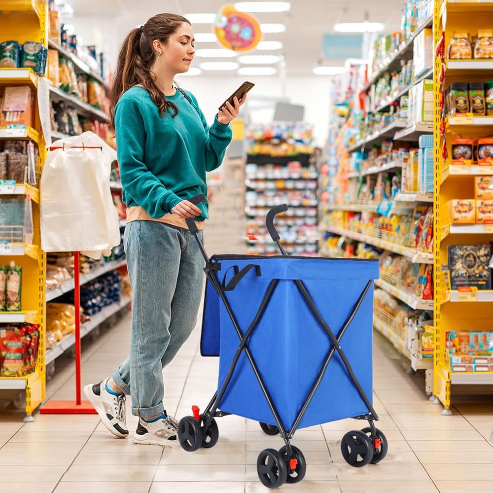 【Waterproof Oxford Cloth】This foldable cart is equipped with removable 600D Oxford cloth lining, strong and durable, it can prevent small items in the cart from falling; with PVC waterproof coating.Additionally, the canvas bag is machine washable,making it easy to keep clean and fresh after repeated use.