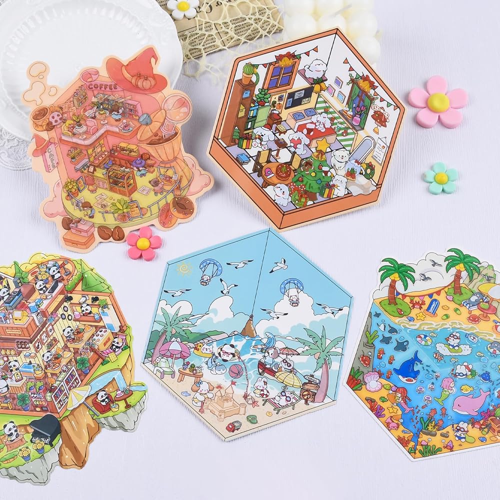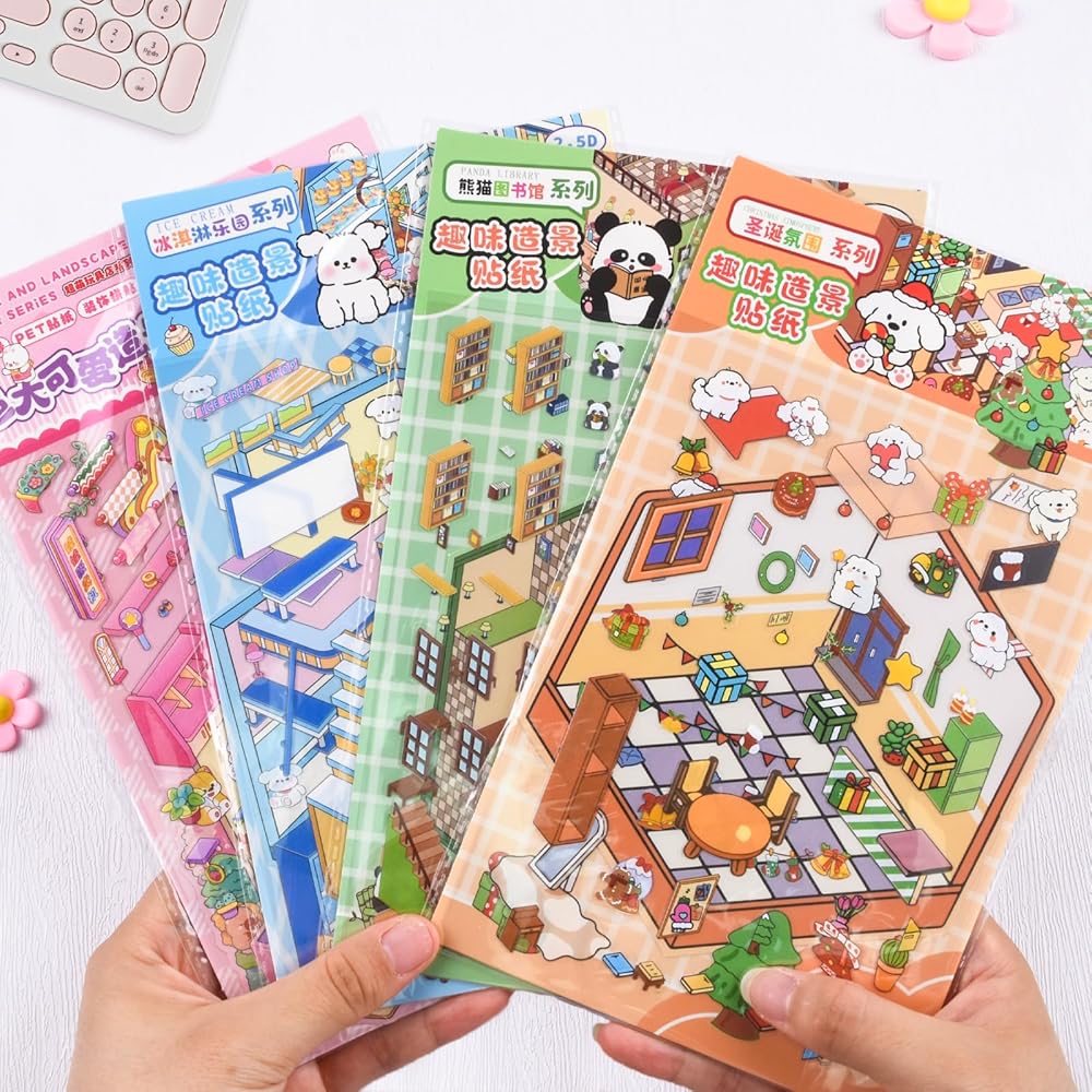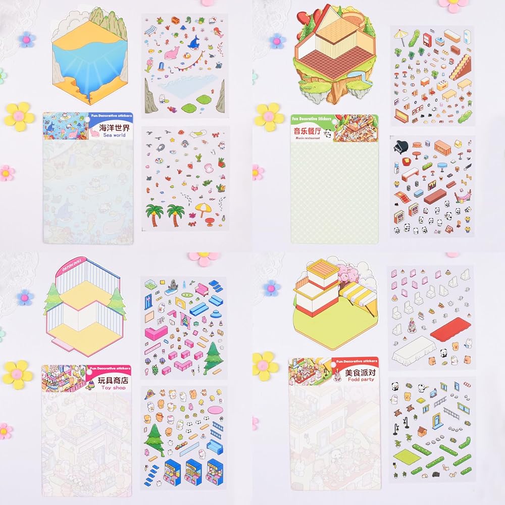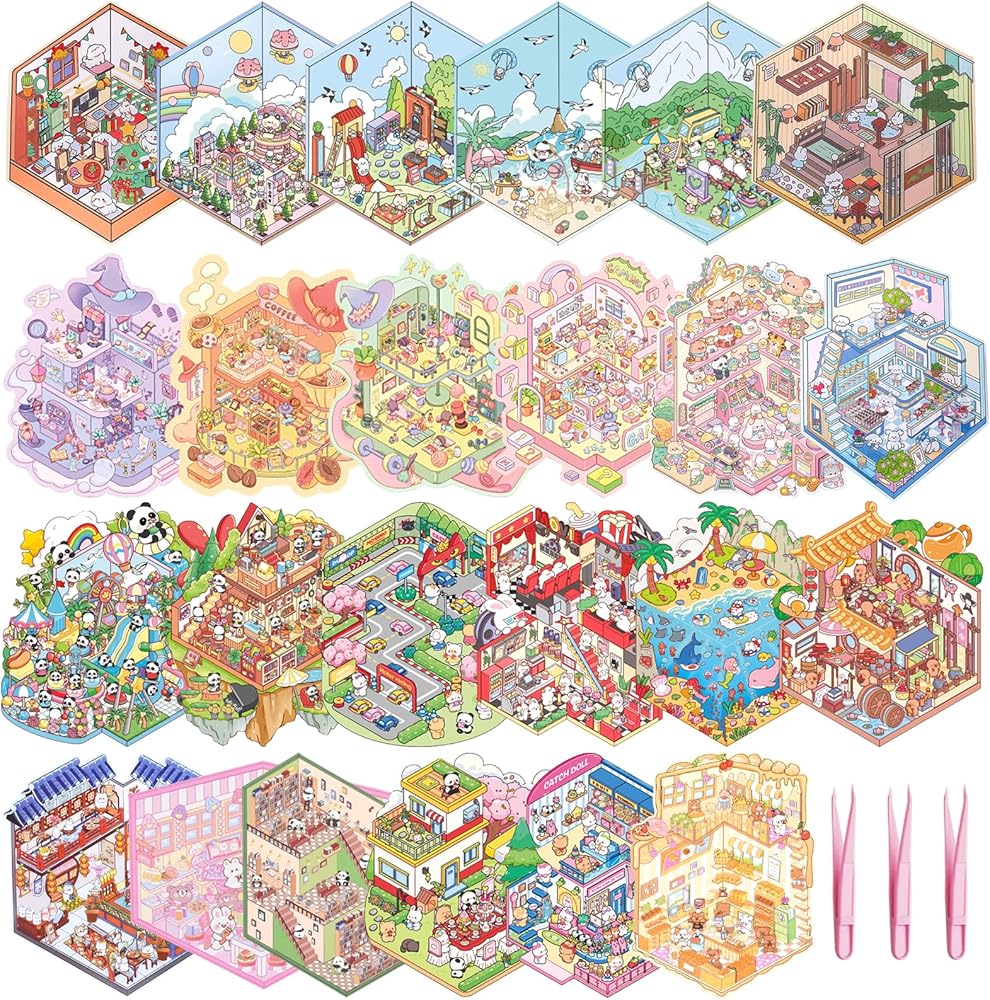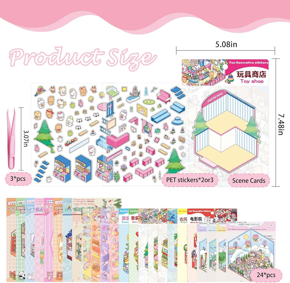 مشهد ملصق ثلاثي الأبعاد DIY: يحتوي ملصقات المشهد ثلاثي الأبعاد DIY على 24 موضوعًا مختلفًا: سوبر ماركت/مطعم/مكتبة/أوشناريوم/ماجيك هاوس/دائرة سباق/مخبز ، وأكثر من ذلك! هناك 3 ملاقط في الحزمة.
