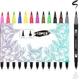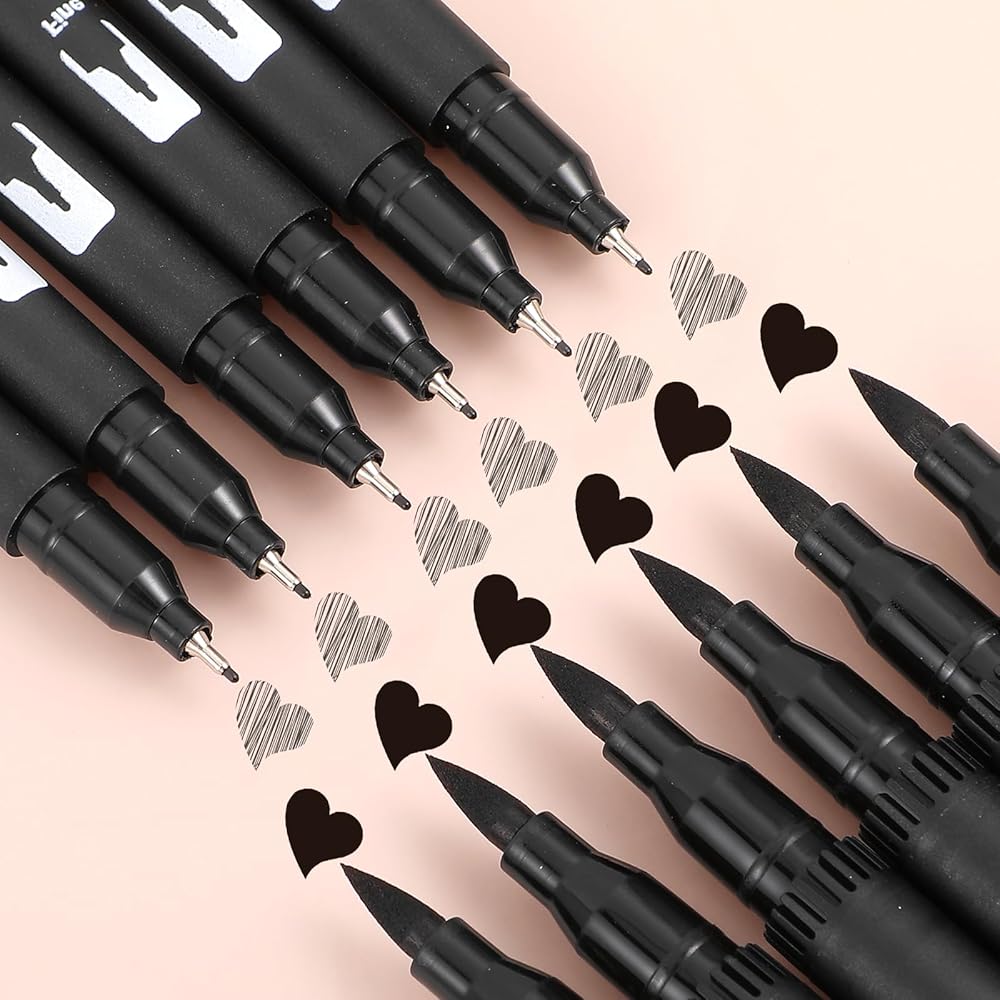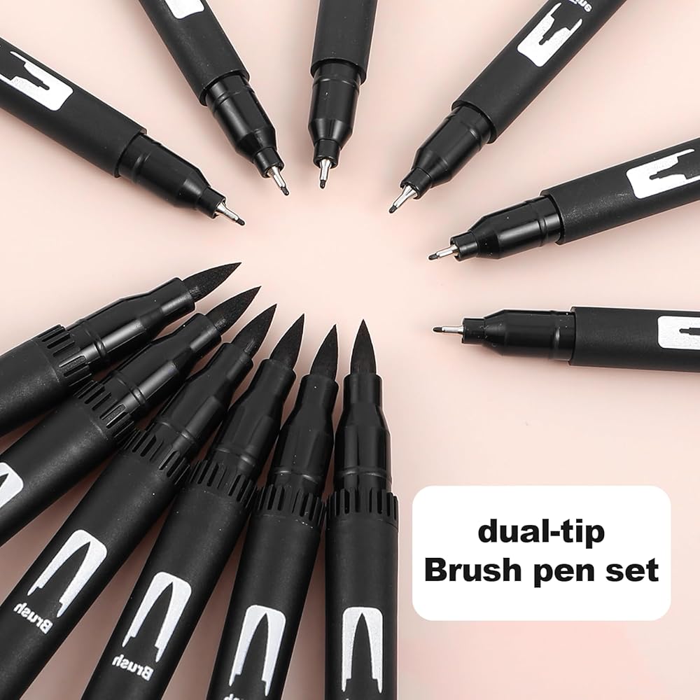 12 Pack Black Drawing Pens Fineliner Ink Pens Felt Tip Brush Pen Dual Tip Brushes Fineliners Pen Waterproof Calligraphy Marker for Art Drawing Watercolor Sketching Anime Beginners Scrapbooking