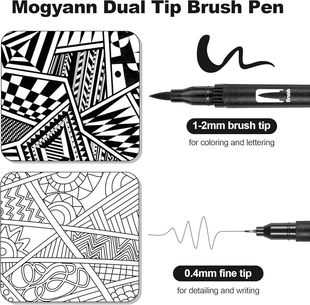 • 【Dual-head Design】Each art pen includes a 0.4mm fine tip for precise depiction, and a 1-2mm brush head for wider strokes. Fineliner pens are suitable for a variety of artistic creations, from detailed illustrations to expressive writing. Dual-tip markers can help you.