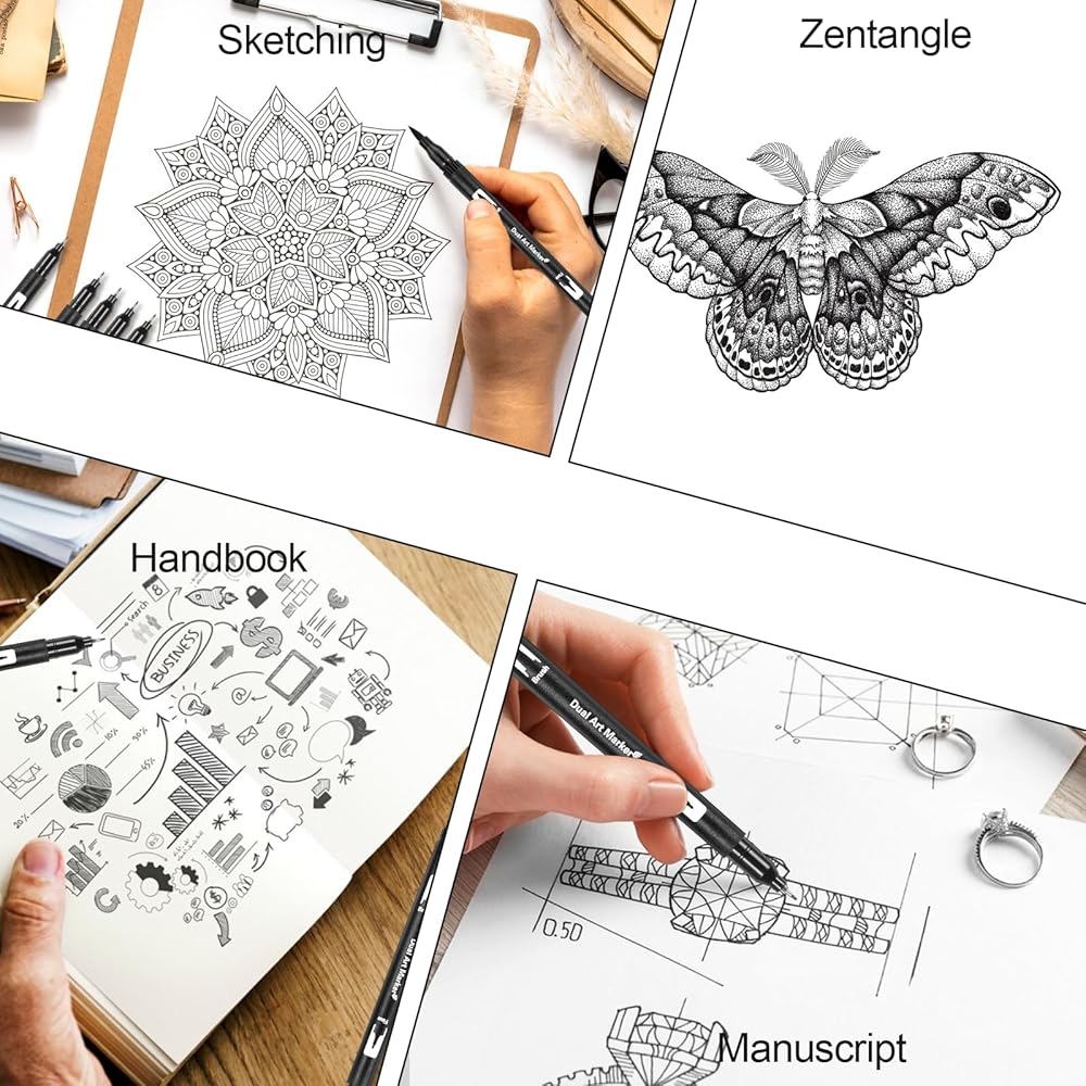 • 【Versatile Art Tools】These scrapbook markers are excellent for sketching, calligraphy, journaling, and more, and fine pens can seamlessly transition between detailed work and bold strokes, sketch pens can enhance your creative process.