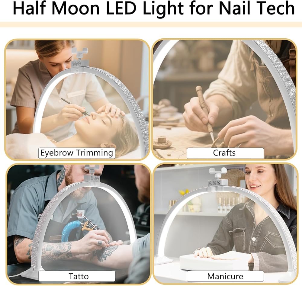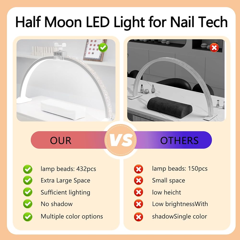 مصباح الأظافر نصف القمر الكبير: مصباح الأظافر من نصف القمر هو مغير من فنيي الأظافر ومحترفي التجميل. يوفر تصميم نصف القمر 180 درجة من الأضواء العمودية. وقد تم تصميم الارتفاع بحجم 13 بوصة لتوفر مساحة كبيرة بين المصباح والطاولة ، حتى تتمكن من راحة أذرع عميلك بشكل مريح بينما لا يزال لديه مساحة كافية للعمل بشكل مريح.