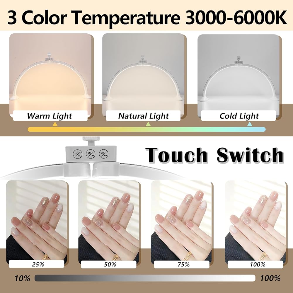 مفتاح اللمس والتعتيم بدون خطوة: يحتوي مصباح LED لفن الأظافر على وحدة تحكم للمس ذكي。 والتي يمكن أن تتحكم في المفتاح وضبط درجة حرارة السطوع ودرجة حرارة اللون ، ويمكن ضبط السطوع من 0 ٪ إلى 100 ٪ ، ويمكن ضبط درجة حرارة اللون في حدود 3000-6000K. تلبية احتياجاتك المختلفة.
