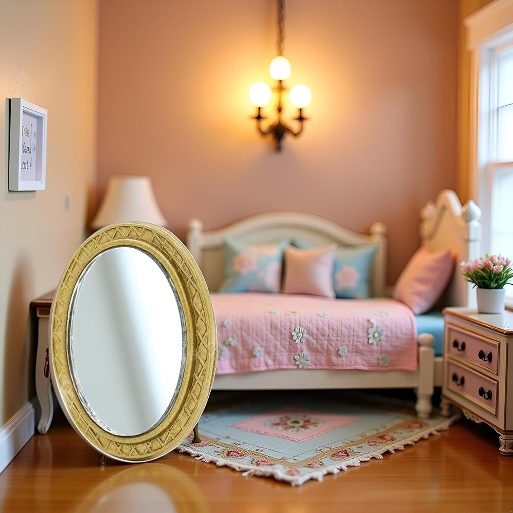 - VERSATILE DECOR: Beautiful wall-mounted mirror accessory suitable for dollhouse bedroom, living room, or hallway settings