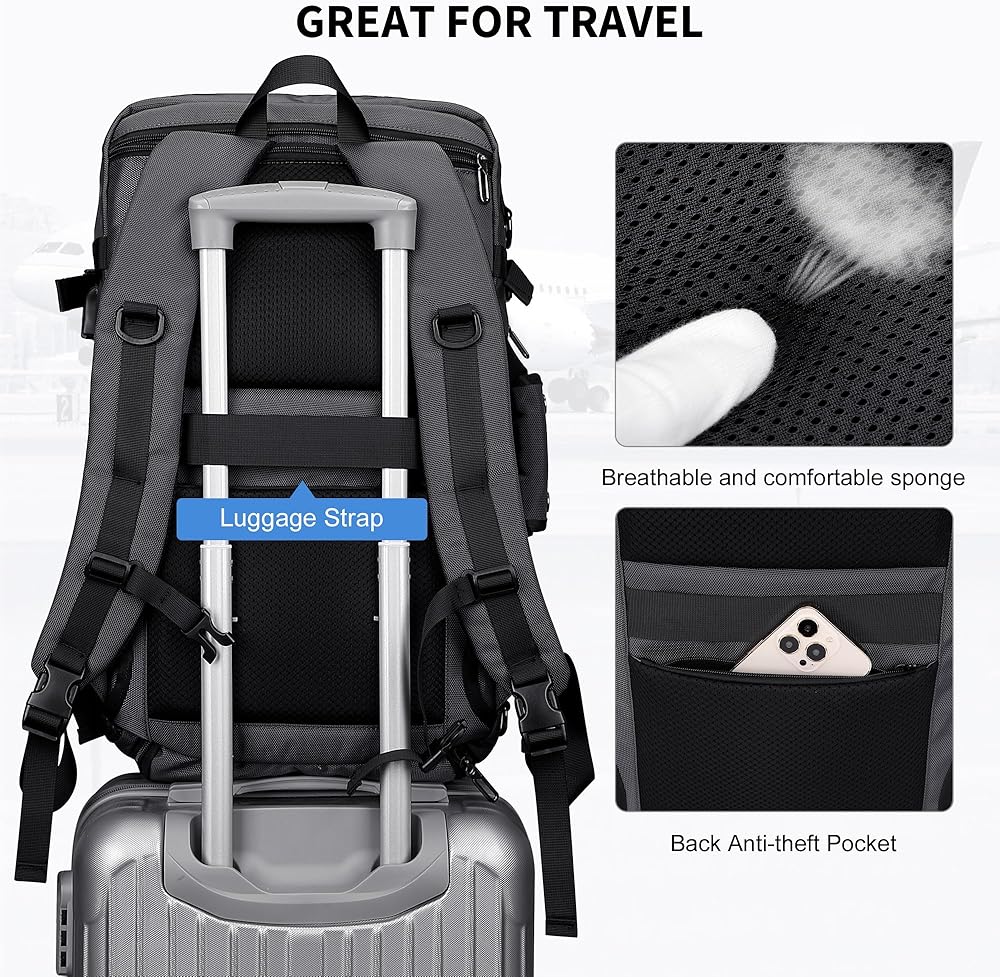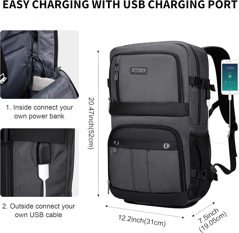 Witzman Carry on Travel Backpack for Men Propack Backpack Praftop مع USB شحن Port Airline المعتمدة (B683 Gray Gray)