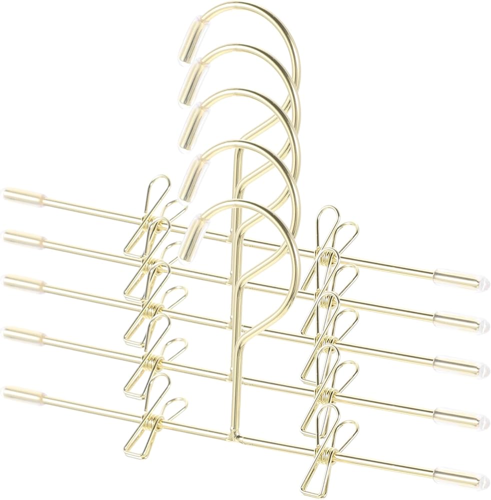 تصميم أنيق: تضيف شماعات الملابس الذهبية هذه لمسة من الأناقة إلى خزانة ملابسك. وهي مصممة لعرض الملابس بشكل جميل ، مما يجعلها إضافة ساحرة إلى أي إعداد منزل صغير