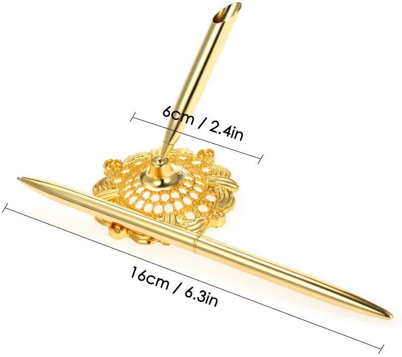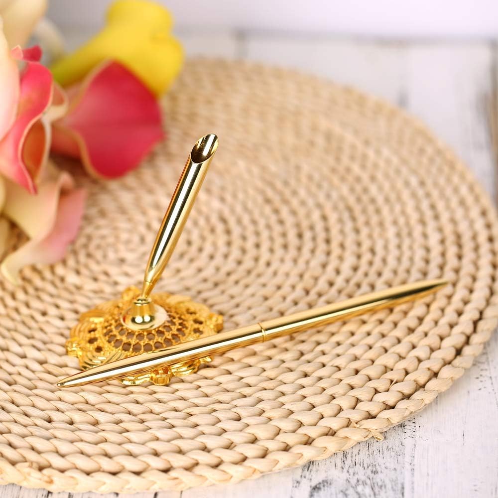 Onwon 2 Pieces Golden Wedding Pen Guest Signing Pen with Hollow Round Pen Holder Sign Writing Pen for Wedding Bridal Golden