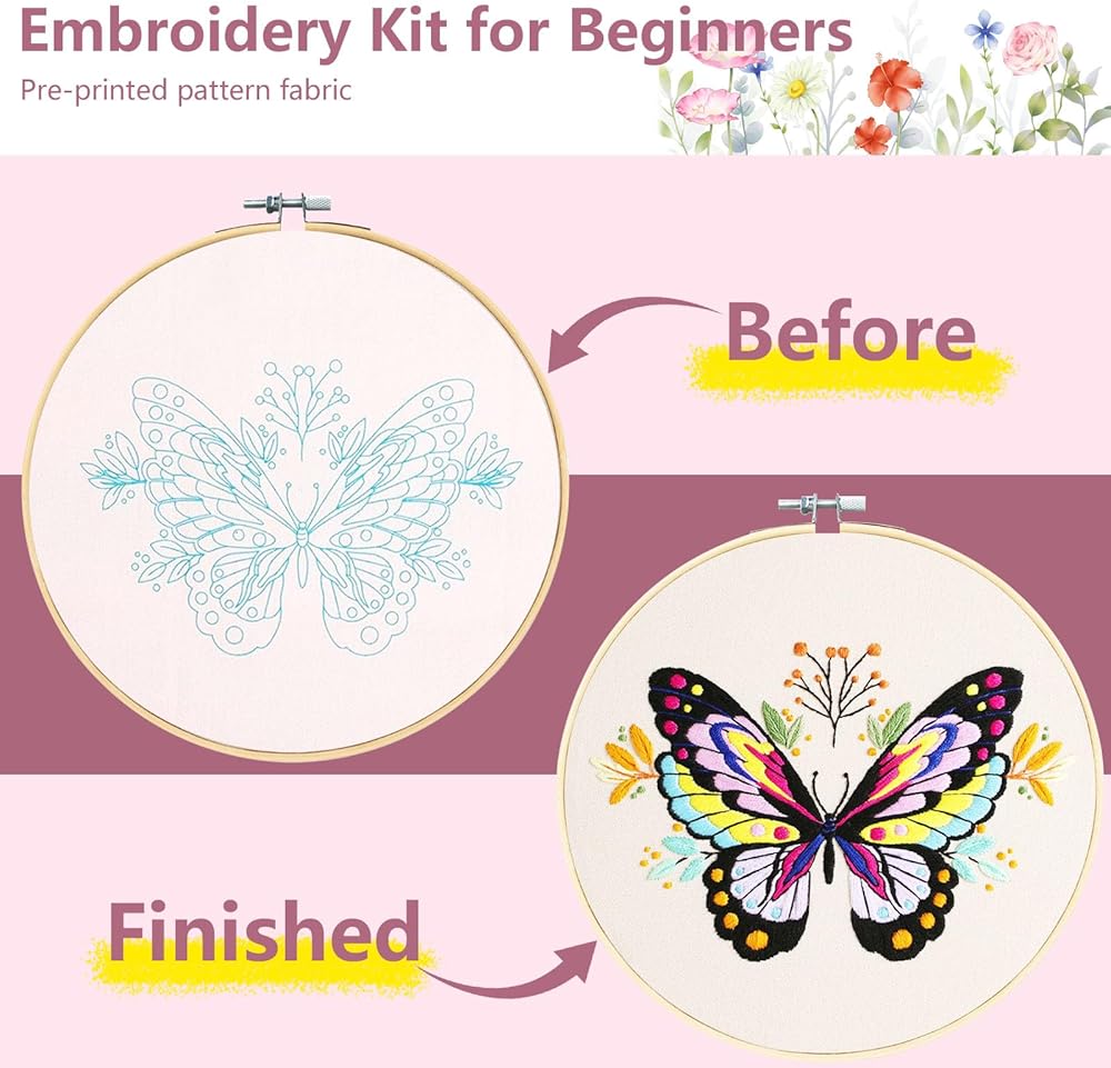 【Premium Service】Our kits feature pre-printed patterns that conveniently disappear after washing, heating, or quick ironing. Keep the beginner's embroidery kit dry until your masterpiece is complete for optimal results. Feel free to contact us with any questions.