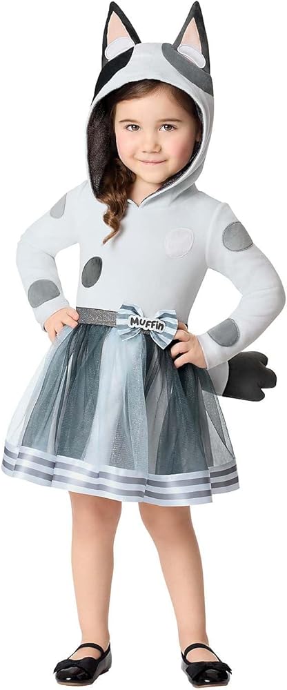 Bring Bluey magic home with this officially licensed Muffin Hooded Dress Costume! This costume includes a hooded dress with attached ears and a tail.