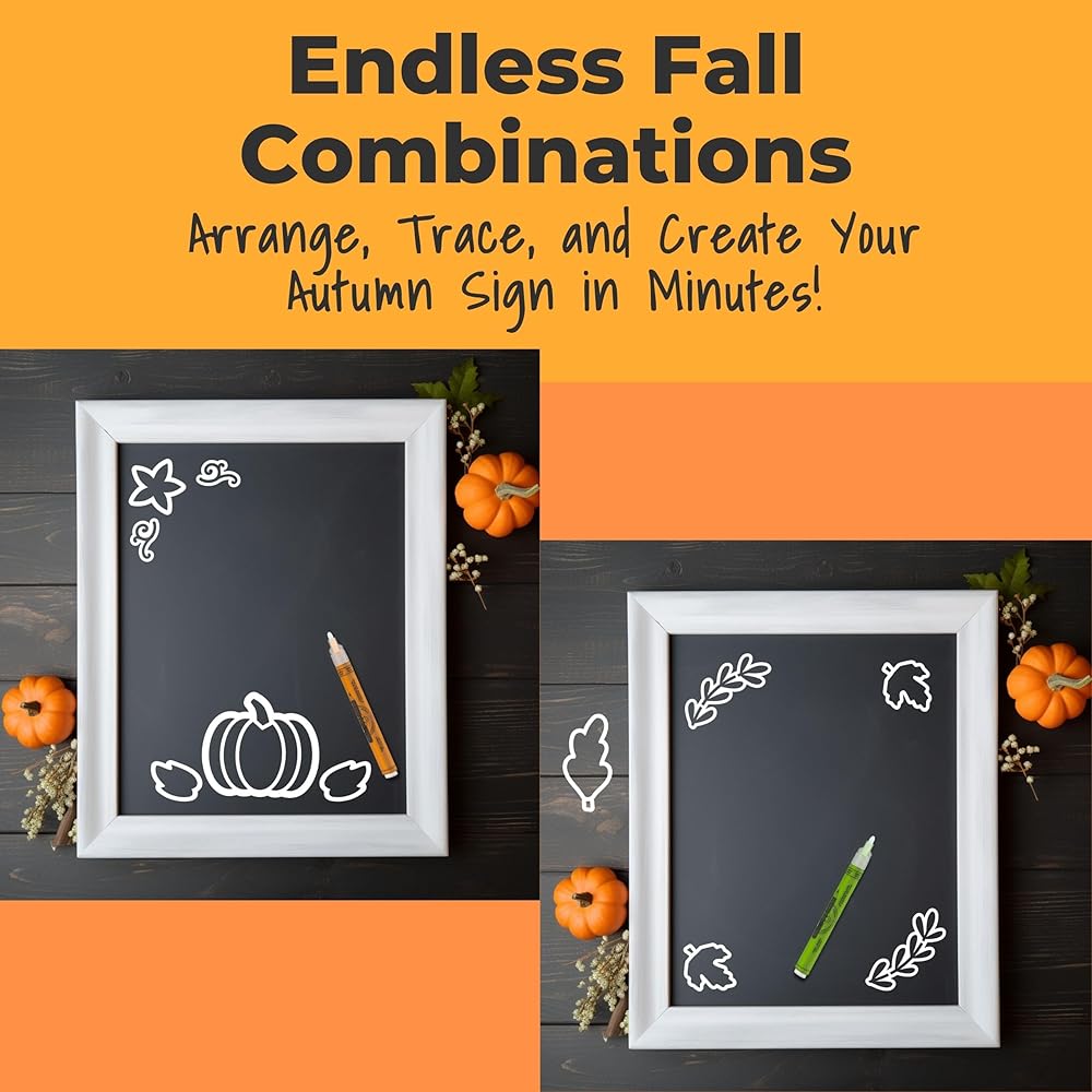 Stencil Magnetic Fall - 12 قالب الخريف لفن السبورة DIY ، ألواح البيضاء ، المطاعم ، لوحات الزفاف ، علامات الأعمال ، Blackboards | الإستنسل القابلة لإعادة الاستخدام لعلامات الطباشير