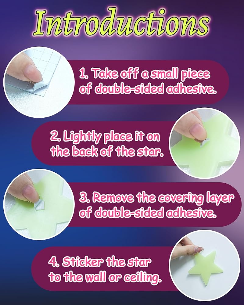 • الجودة المتميزة: متوهجة في النجوم المظلمة مصنوعة من مواد عالية الجودة. يمكنك استخدام مزيج من نجوم التوهج المتزايدة الساحرة لغرفة المعيشة الخاصة بك.