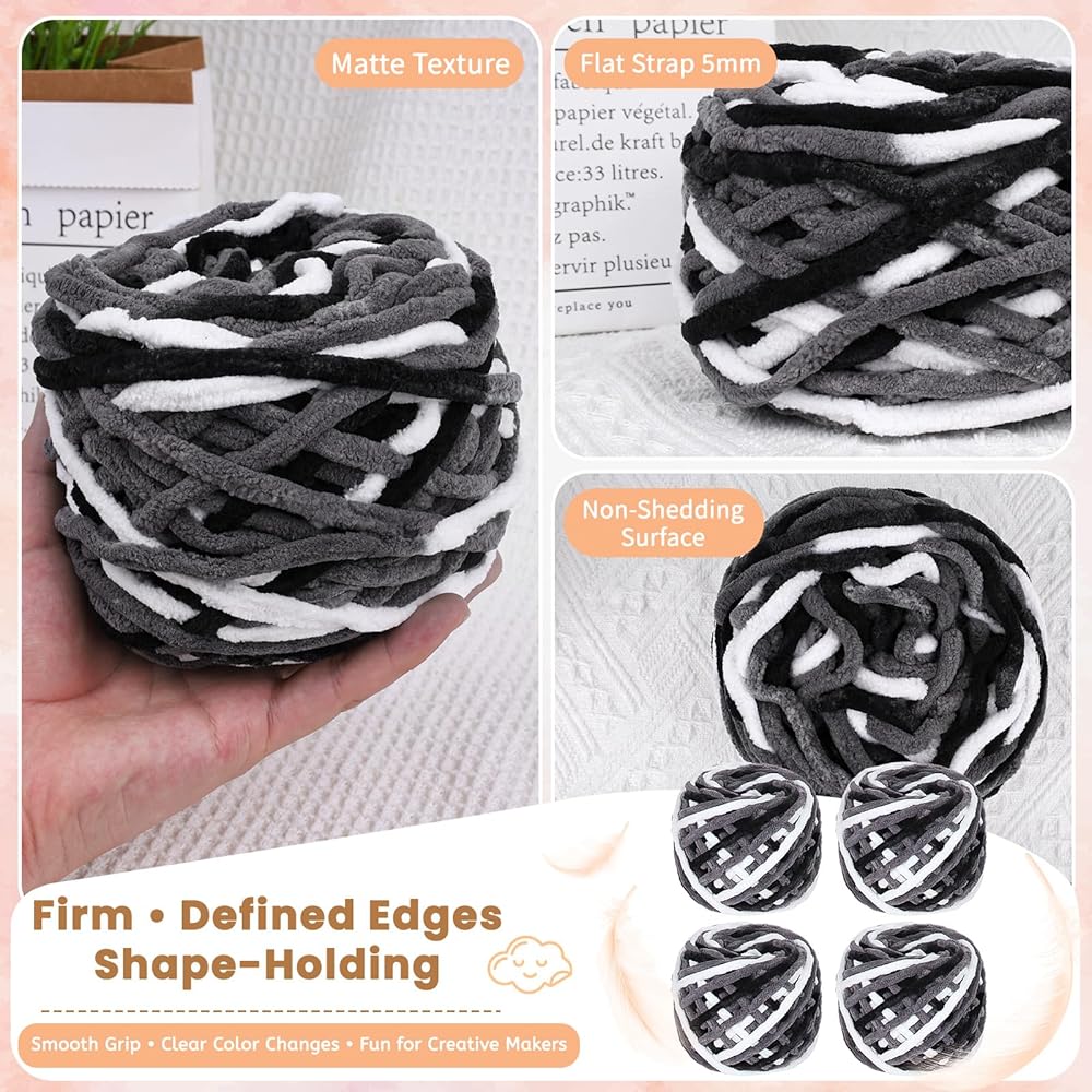 Unlike traditional chenille yarn, this 5–6mm flat tube yarn has a dense, single-strand body that provides excellent form-holding capacity.