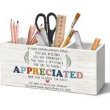 This wooden desktop organizer offers a simple way to keep small items in place while adding a decorative accent to your space. Designed with three separate compartments and a printed surface, it works well on desks, dressers, shelves, or bathroom counters. Its compact format and understated style also make it a thoughtful gift option for coworkers, teachers, or friends.