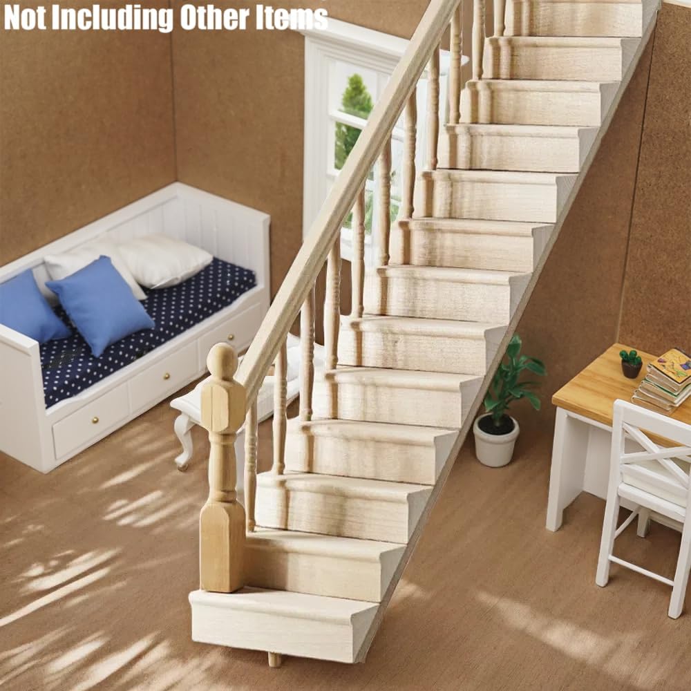 Nice Gift: This mini staircase makes a perfect gift for miniature enthusiasts. The unfinished dollhouse furniture is a wonderful addition to any dollhouse accessory collection. The 1/12 scale dollhouse living room furniture enhances any mini collection. This dollhouse staircase for crafts will bring more joy to your dollhouse decoration.