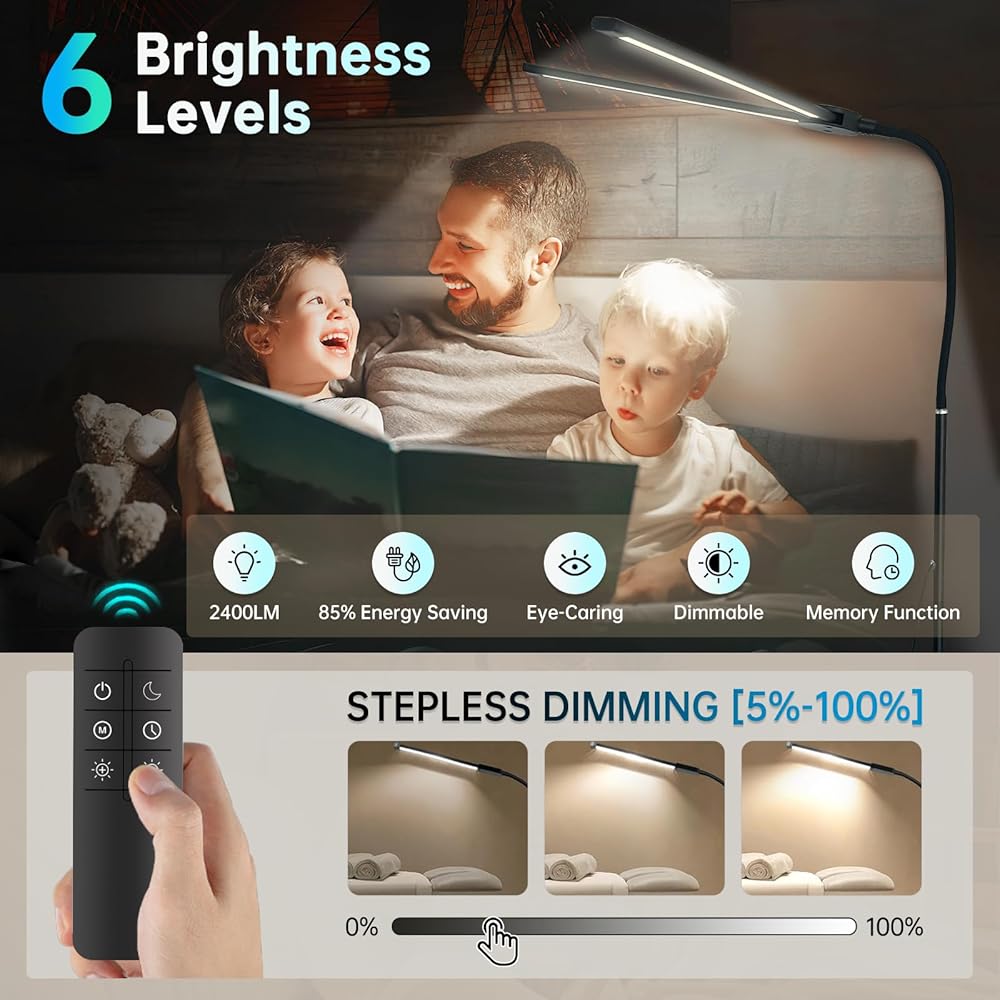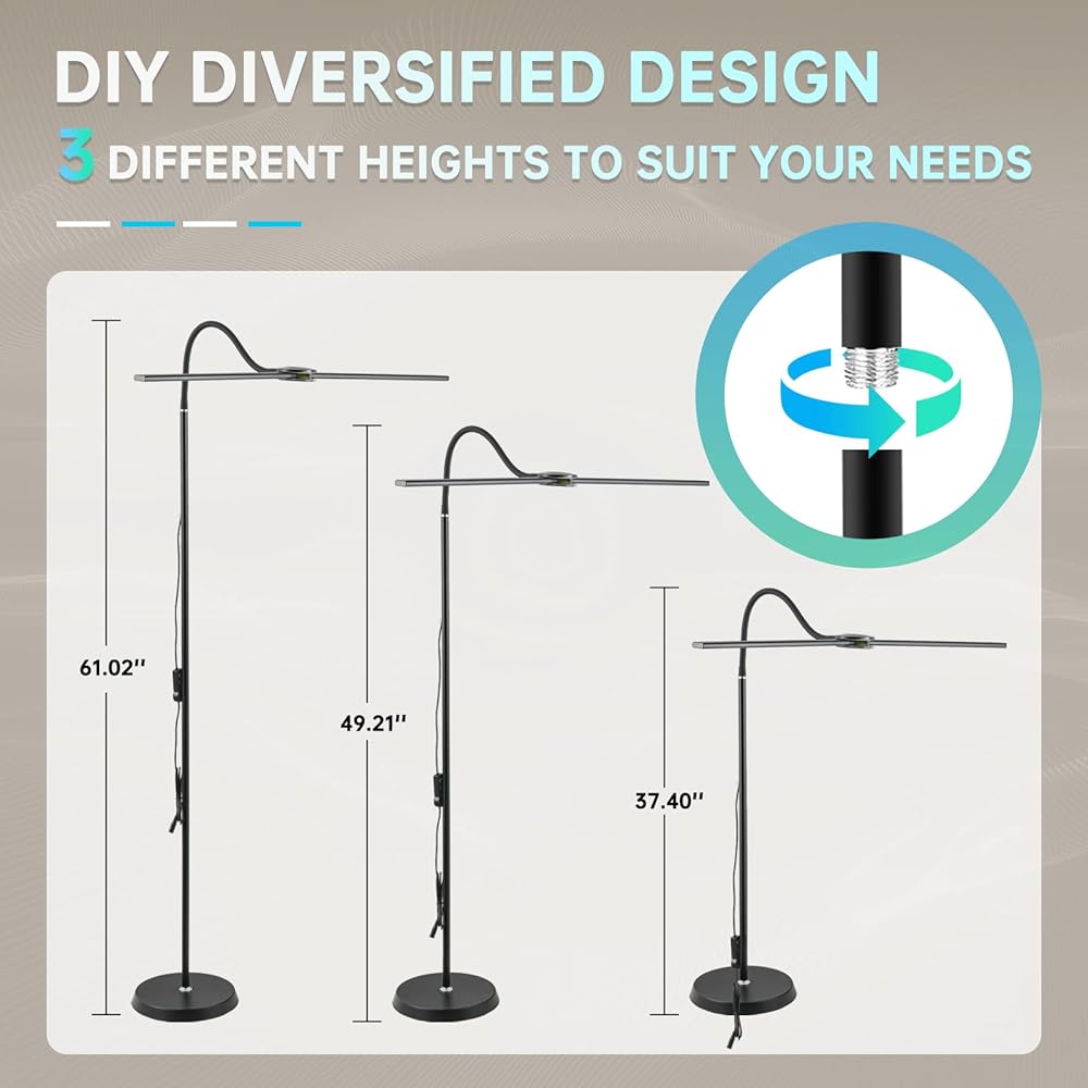【تصميم Gooseneck المرن】 يتميز مصباح أرضي LED هذا بمصباح اثنين من الأسلحة القابلة للتعديل بشكل مستقل مع مرونة كاملة 360 درجة. سواء كنت تقرأ أو تعمل أو القيام بمهام تفصيلية مثل امتدادات الرموش ، يمكن وضع كل رأس من الضوء بالضبط عند الحاجة - لا تكافح أكثر مع زوايا ثابتة. يحتفظ Goosenecks القوية بأشكالها بمرور الوقت دون أن تنهار. مع عمر 60،000 ساعة ، يوفر هذا المصباح إضاءة طويلة الأمد وفعالة في الطاقة يمكنك الاعتماد عليها لسنوات.