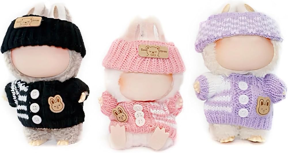 Dress up your beloved 17cm doll in style with this charming 3-pack clothing set. Perfect for collectors and enthusiasts alike, this adorable collection features cozy sweater outfits that will keep your doll looking fashionable for display or playtime. Each piece is carefully designed to fit 17cm dolls, making wardrobe changes easy and fun. The set offers versatility for creating different looks and adding personality to your doll collection. These miniature clothes allow collectors to customize their display pieces or give children more options for creative play. Please note that dolls are not included with this clothing set. Whether you're expanding your doll's wardrobe or starting a new collection, these outfits make a delightful addition to any doll enthusiast's accessories.