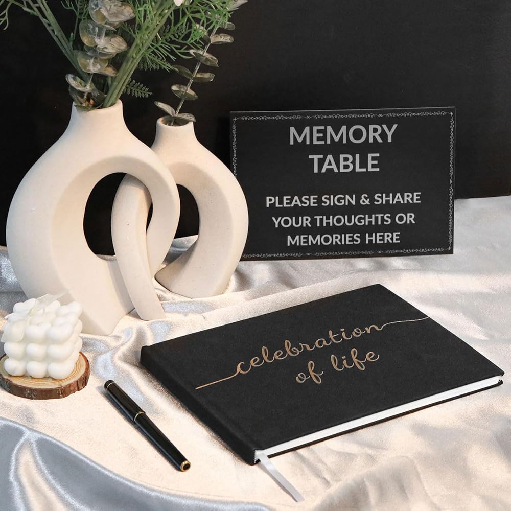 【التقاط كل ذاكرة ثمينة - يوفر كتاب الضيوف هذا الاحتفال بالحياة صفحات سخية لجميع الضيوف لتبادل التعازي القلبية والقصص العزيزة التي تضمن عدم وجود لحظة مفيدة أثناء تكريم تراث أحبائك بكرامة