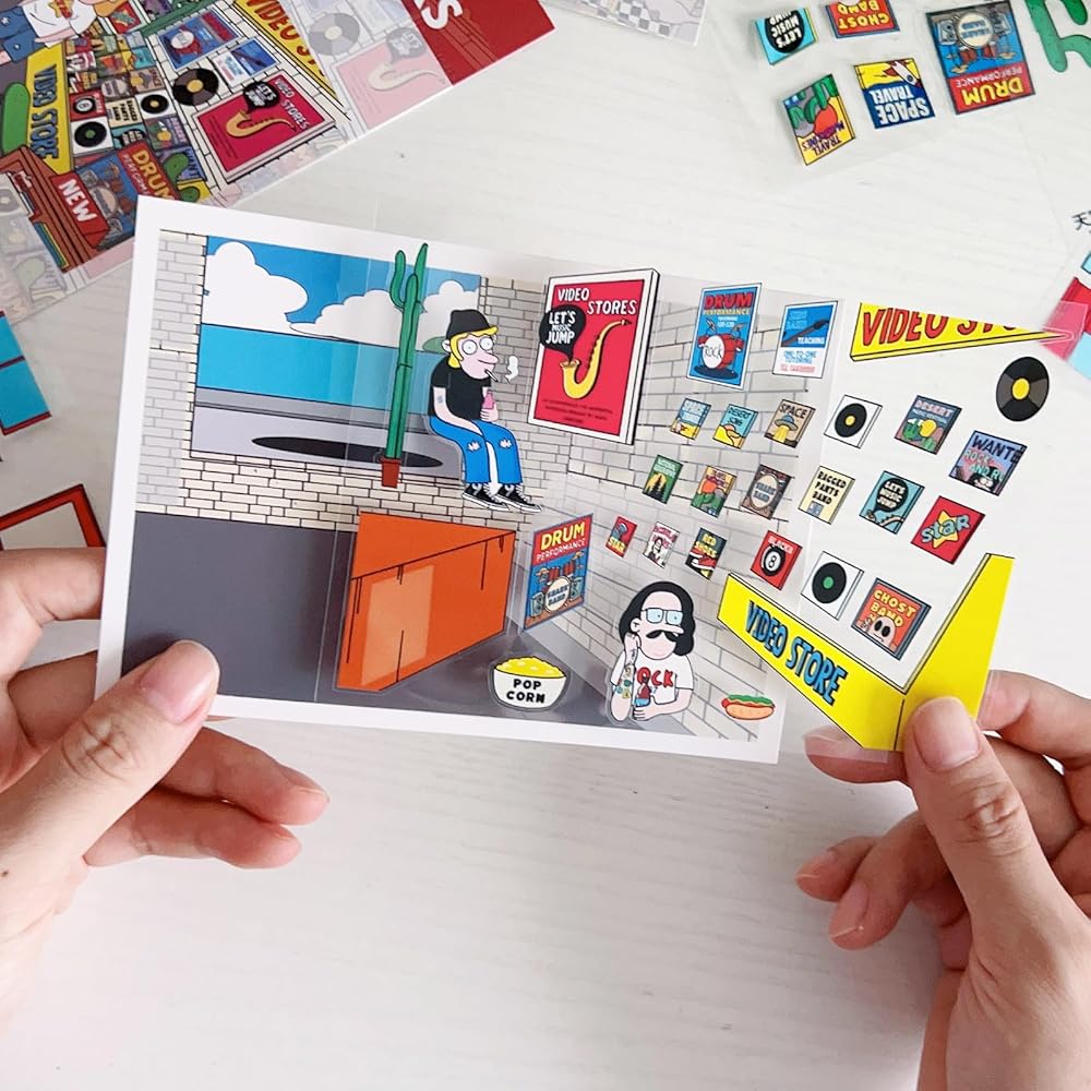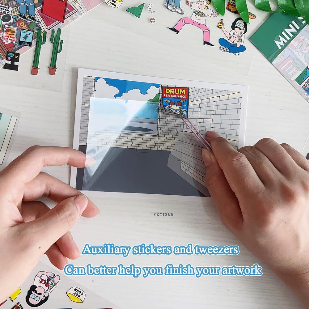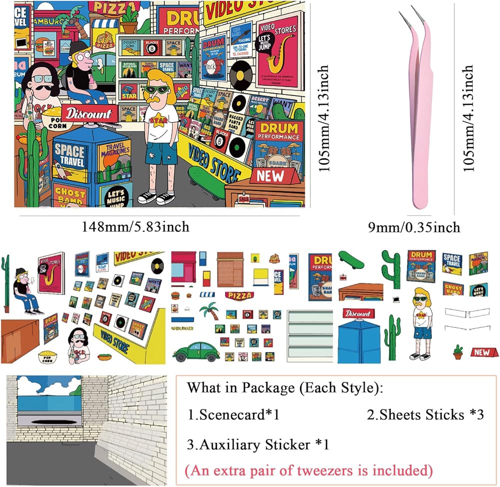ملصقات Diorama Diorama ذات الطابع الشامل للحياة diorama : ملصقات المنزل ثلاثية الأبعاد DIY تتميز بمشاهد ملصق ذات طابع تبلد على شكل بلدة تبلغ 220*307 مم. ويتضمن أيضًا بطاقة شفافة ضوئية وظلًا وملصقات مساعدة وزوج من الملقط. تم تصميم البطاقة الشفافة للضوء والظل لإعادة إنشاء شعور شمس بعد الظهر في المدينة ، مما يضيف لمسة واقعية إلى الديوراما الخاصة بك
