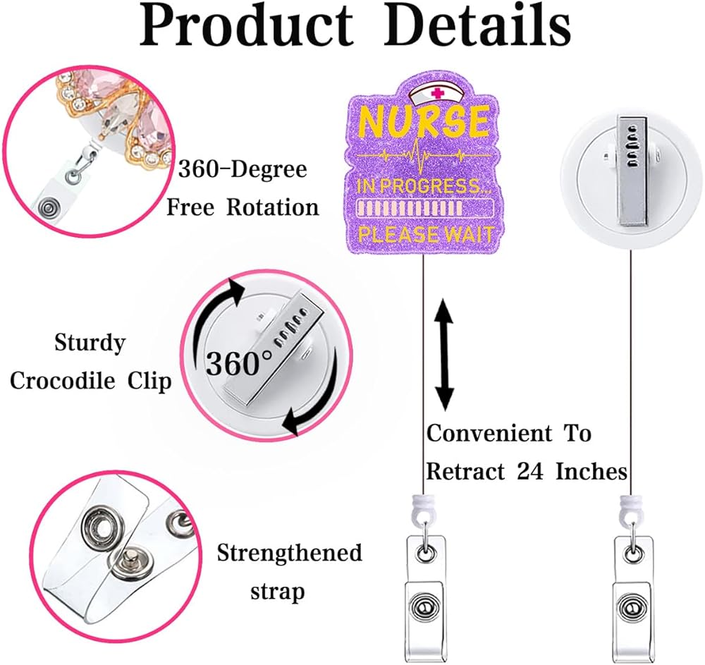 • NURSE BADGE REEL WITH BLING DESIGN: Add a touch of sparkle to your day with this cute bling badge reel, featuring dazzling glitter. It combines style and practicality, making it perfect for nurses, doctors, and other healthcare professionals. Keep your ID safe while expressing your unique style!