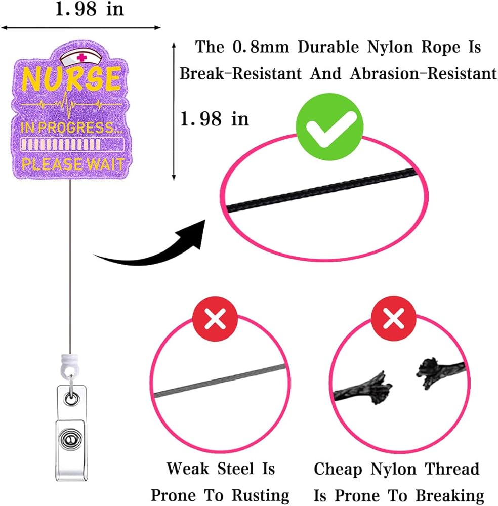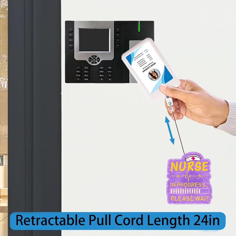 • BADGE REELS RETRACTABLE FOR EASY USE: This badge reel features a smooth retractable nylon cord that extends up to 24 inches, offering easy access to your ID, keys, or access cards. It's perfect for busy medical professionals, providing both convenience and durability without compromising on style or functionality.
