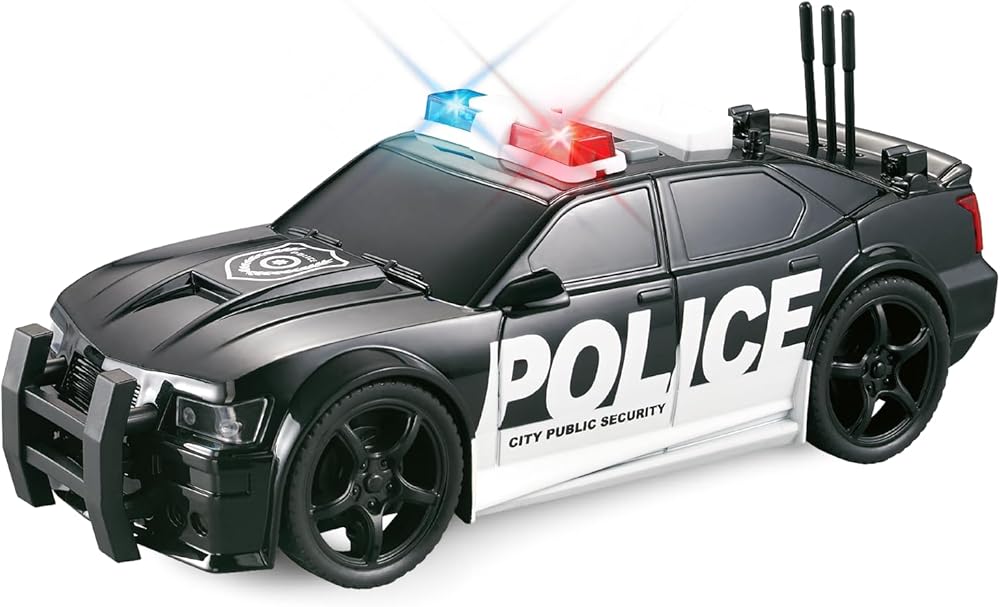 • Sirnes Sounds and Light: ميزات 3 أزرار صوتية. ستسابق سيارة الشرطة إلى الأمام ، وأضواء وميض وأصوات 3 صاخبة مع تسرعها إلى الأمام! يمكن أن يتأرجح الهوائي الخلفي لسيارة الشرطة ، ويتظاهر بإظهار العلامة لالتقاط الخارجين عن القانون.