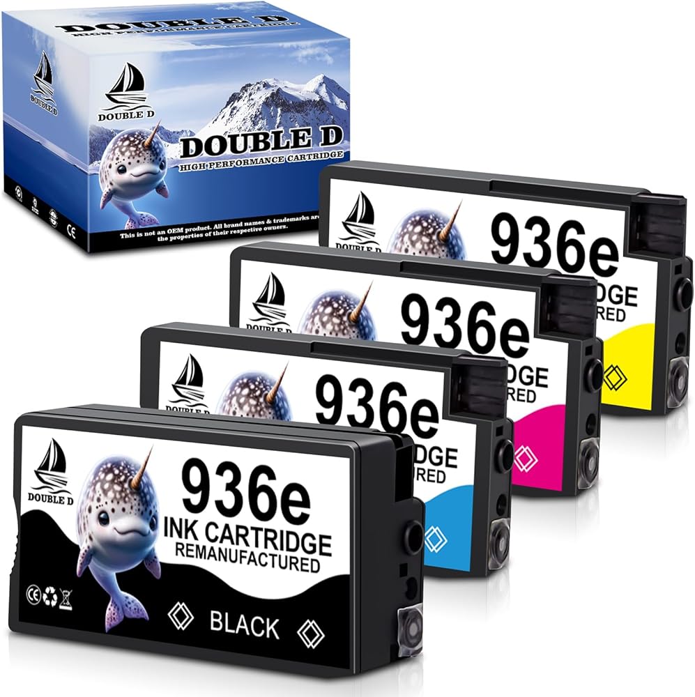 Double D 936E خراطيش الحبر المتوافقة مع HP 936 936E حبر خرطوشة كومبو 4-pack for OfficeJet Pro 9110B ، 9125E ، 9128E ، 9130B ، 9135E ؛ OfficeJet Pro Wide Format 9730e (BK/C/M/Y)