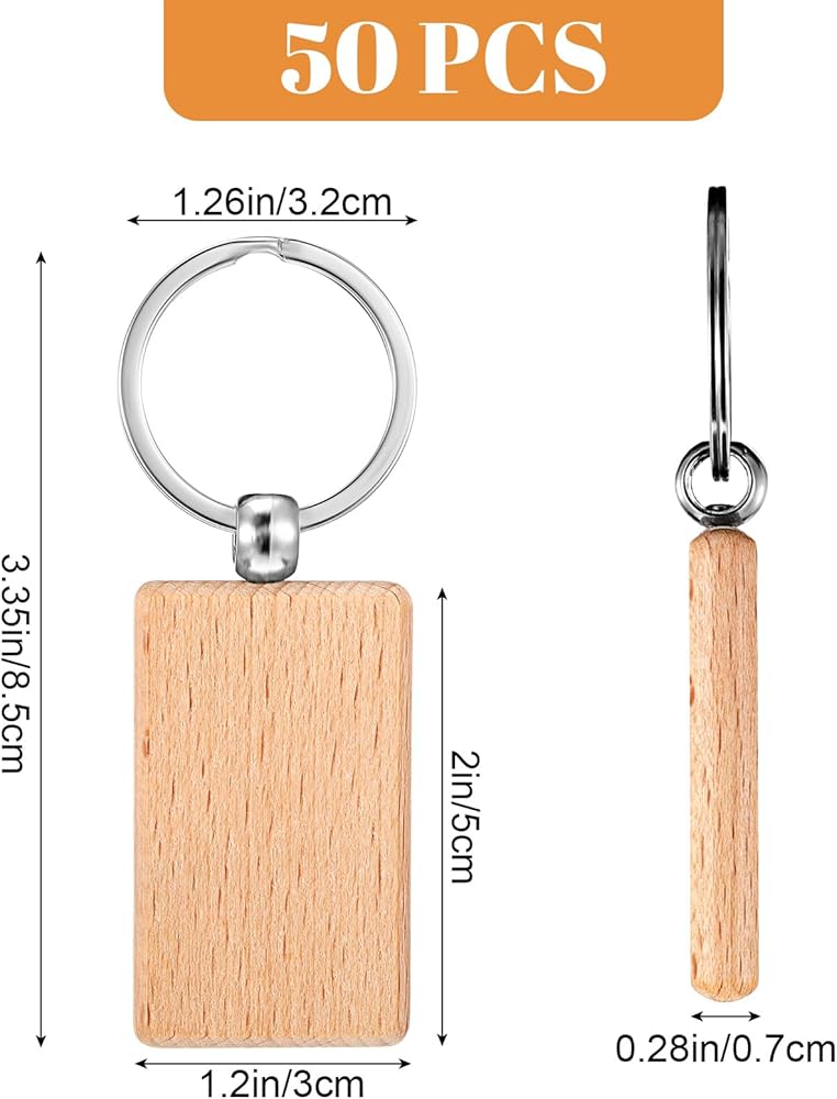 【Complete Set】The package includes 50 blank keychains, offering plenty of laser engraving supplies for your projects. Whether you're using a laser wood engraver or traditional tools, these wooden keychain blanks are ready for your creative touch