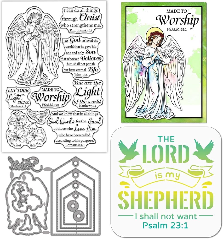 Globleland Angel Angel Bible Text Clear Silicone Stamp Metal Lily Labeling Label Cuts Die Die Dove of Peace Pareing Paint Craft Stencils for Cards Making Scrapbooking Craft Diy