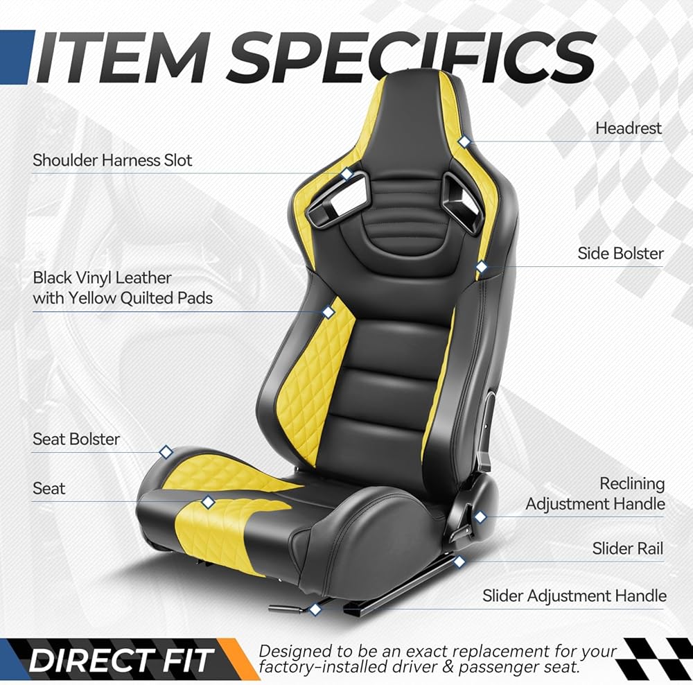 وصف المنتج - تعتبر مقاعد السباق هذه عالمية لجميع المركبات التي تحتوي على شريحة مقعد ما بعد البيع ويمكن أن تستوعب الأبعاد الإجمالية للمقعد ، لكن كل مقعد سيتطلب مزلاجًا لقوس المقعد المحدد للسيارة. يرجى التأكد من وجود قوس متاح لسيارتك قبل الشراء.