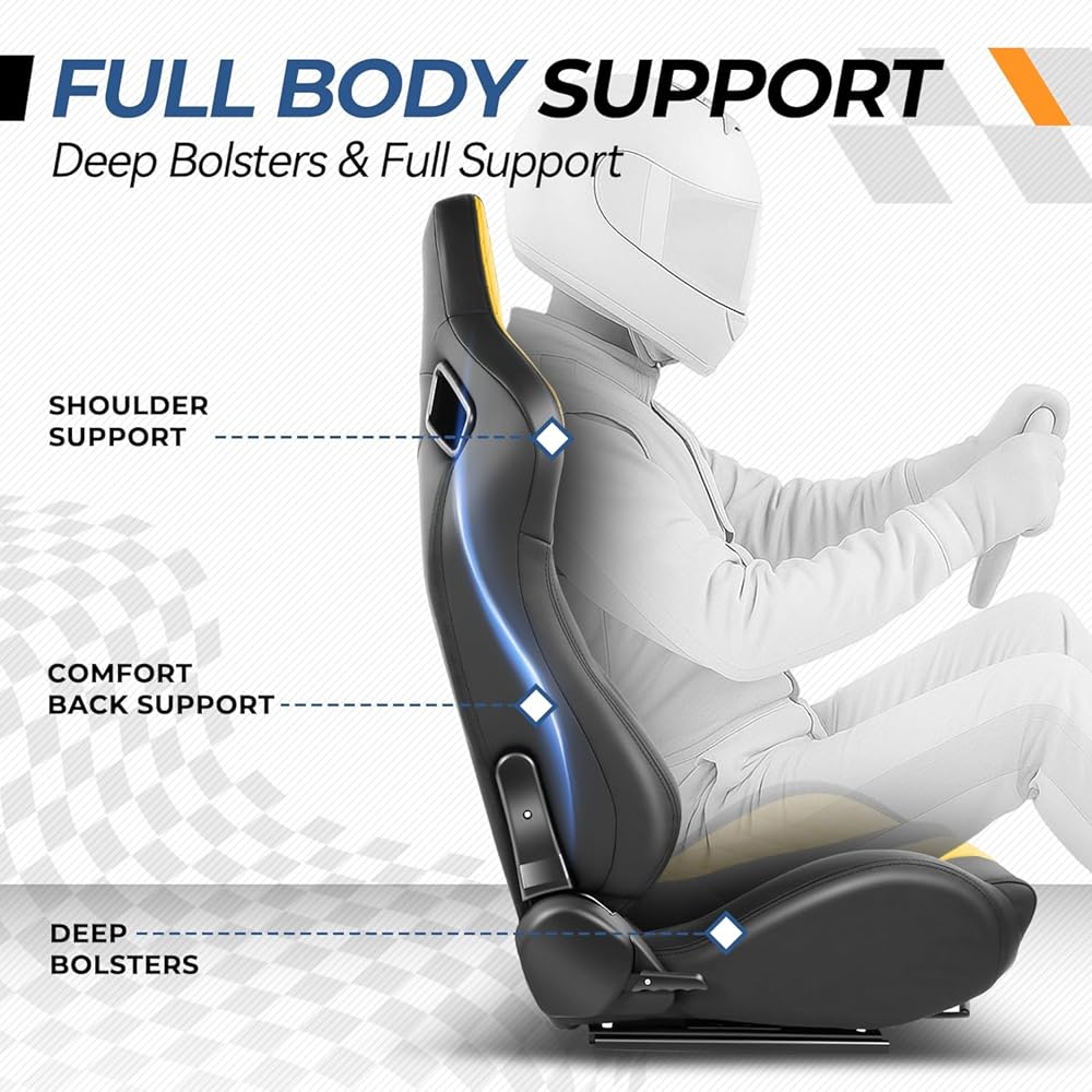 حماية كبيرة - تأتي مع مجموعة من [2] مقاعد دلو فينيل الأسود مع أقسام مبطنة للنمط المبطن ، وتسخير حزام المقعد المكون من 4 نقاط ، ومساعدات الفخذ العميقة للوصى ، للحفاظ على السائق في وضعه في المقعد.