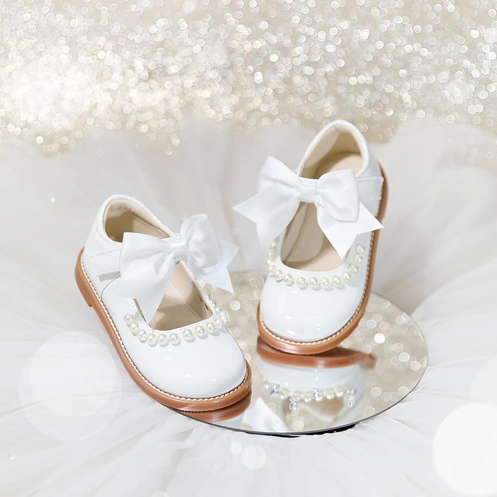 • 【PU اللامع اللامع مع اللؤلؤ】】 عالي اللمعان المرآة pu الجلود يقاوم المجففات والمناديل تنظيف بسهولة. يضيف لهجة القوس الرقيقة مع اللؤلؤ فو سحرًا أنيقًا - مثالي للفتيات الزهور والحفلات والتقاط الصور.