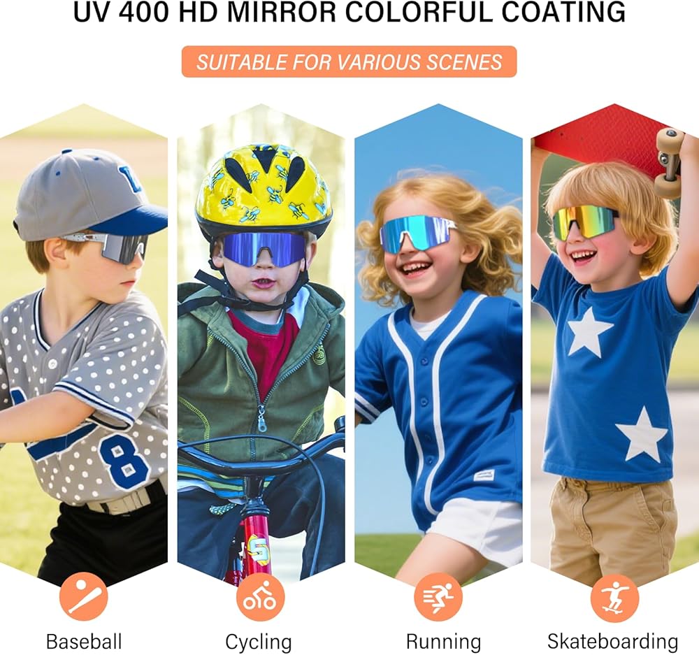 【مصممة للأطفال】 لدينا نظارة شمسية أطفالنا لديها مجموعة متنوعة من الألوان ، مناسبة للبنين والبنات الذين تتراوح أعمارهم بين 6-14 عامًا للبيسبول وركوب الدراجات وصيد الأسماك والتنس والكرة اللينة والغولف والمشي لمسافات طويلة وغيرها من الألعاب الرياضية في الهواء الطلق.