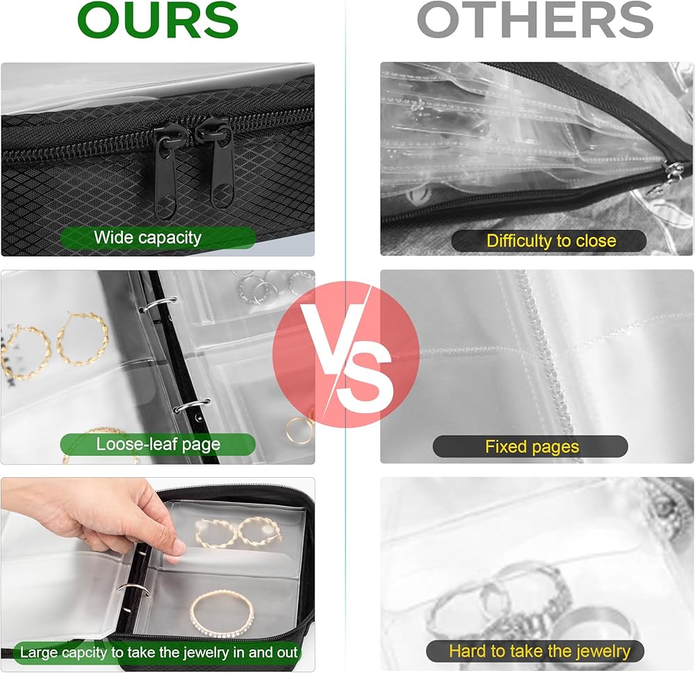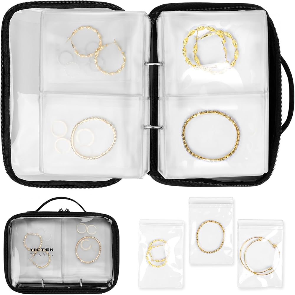 【تصميم الورقة السائبة المرنة】 مثالية لتنظيم الحلقات والقلائد والأساور والأقراط على حد سواء ، تعمل هذه المجموعة مثل كتاب المجوهرات القابل للتخصيص. يتم توصيل الصفحات على غرار الموثق بسهولة التقليب ، ويفتح كل حقيبة على نطاق واسع للوصول السريع وخالي من المتاعب.
