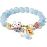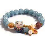 Embrace good fortune with this stylish Lucky Cat Bracelet. Featuring a charming ceramic cat pendant, this bracelet is designed to attract positive energy, prosperity, and good luck. The calming blue crystal beads not only add a pop of color but are also believed to bring balance and harmony to your life. Handcrafted with care, the cat pendant is a playful yet meaningful touch to any outfit, making it a perfect accessory for daily wear. Based on feng shui principles, this bracelet offers protection, helping to ward off negativity while promoting wealth and success. At 5.9 inches, it's designed to fit most wrists comfortably, making it an ideal gift for anyone seeking a blend of style, luck, and positive vibes.