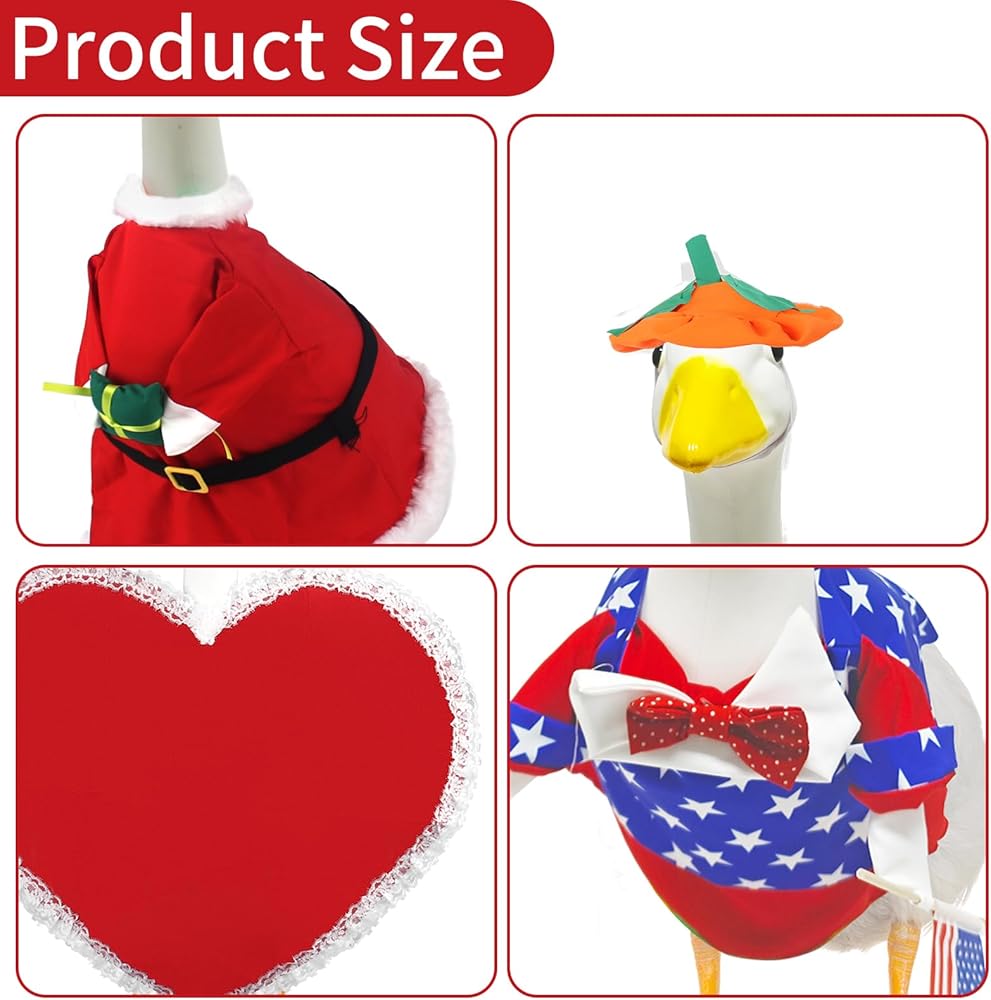 The 8 sets of porch goose costume for different festivals, but they are both dazzling, which can make your goose look very outstanding. You can also match different clothes according to different occasions.