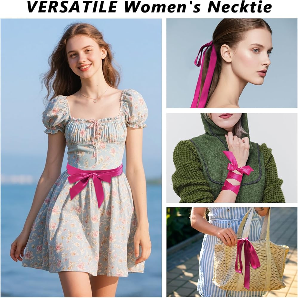 العنق النسائي متعدد الاستخدامات: تم تصميم ربطة عنق بسيطة ولكن عملية للنساء العديد من الوظائف ؛ يمكن أن تتناسب ربطة عنق النساء قمصانك وزياتك الرسمية والفساتين والبلوزات حتى ، وتكون زخرفة لأحزمة اللباس ، وأشرطة الشعر ، وحقائب اليد ، إلخ