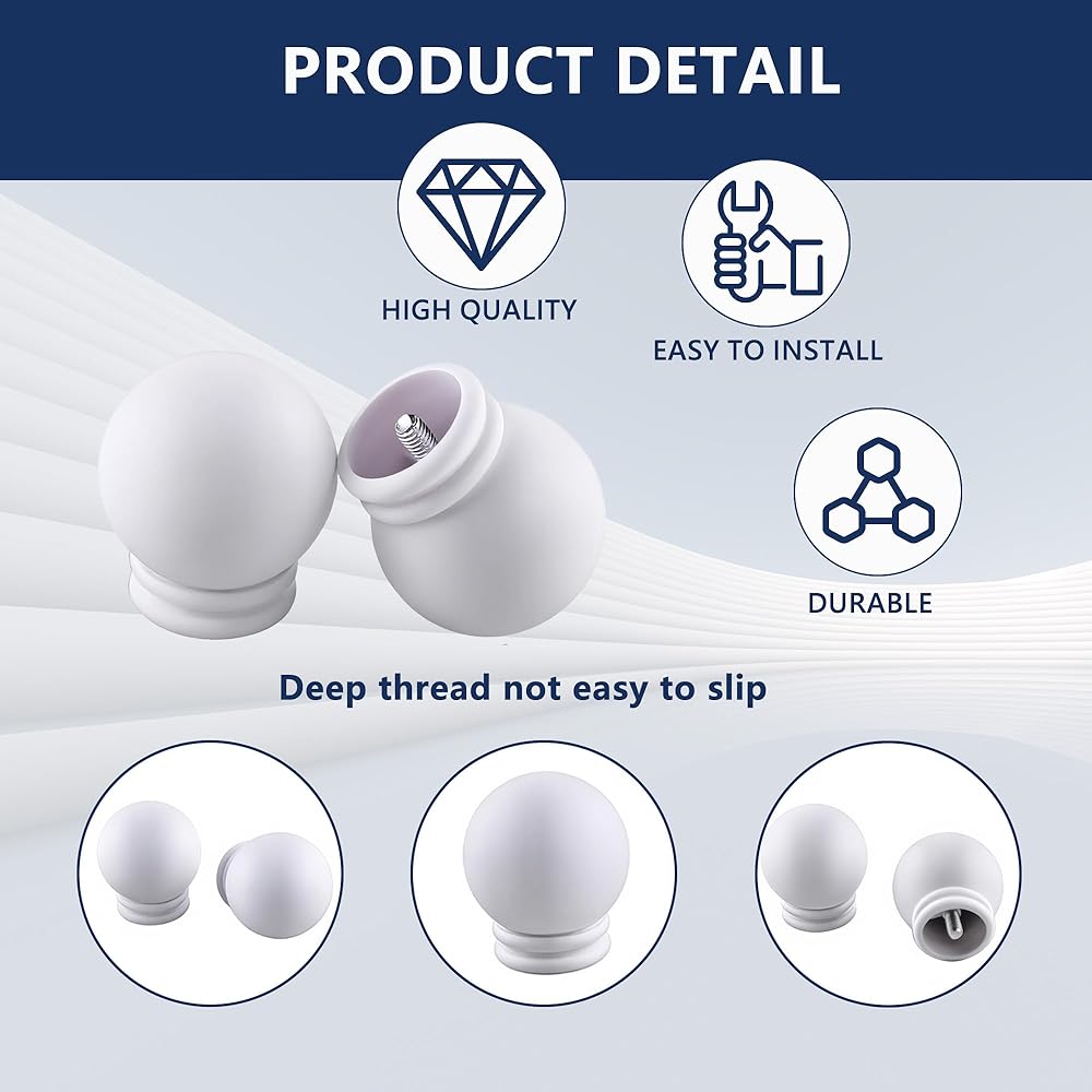 2 Pcs Round Curtain Rod Finials