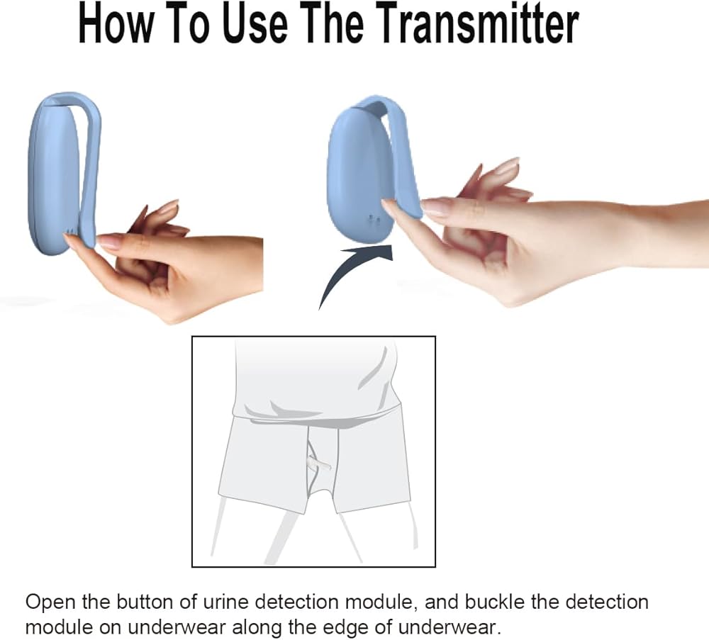 ما عليك سوى قص جهاز الإرسال على السراويل الداخلية حيث يسهل الرطب ، ثم يراقب حالة تبول الأطفال وإرسال معلومات الإنذار إلى جهاز الاستقبال ، سهل الاستخدام.
