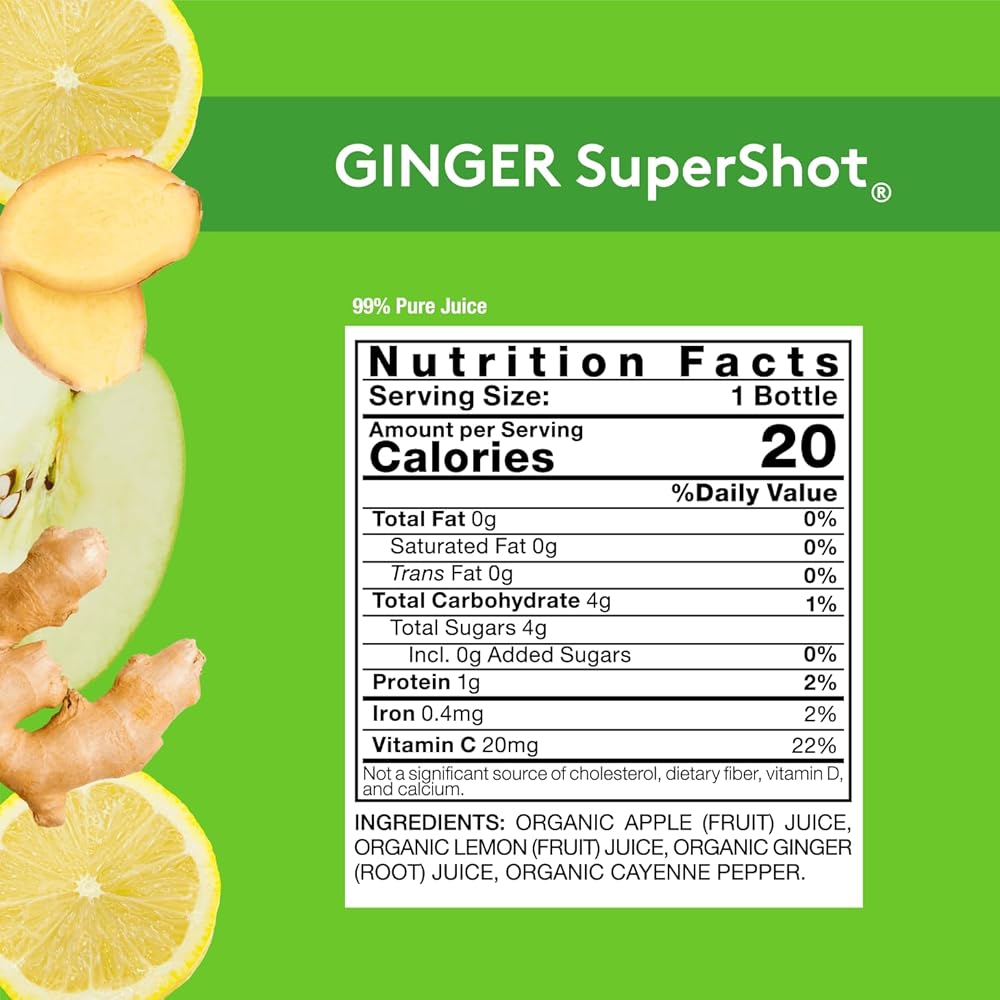 لقطة Superfood: حزم Supershot SuperShot فيتامين C فيتامين C مع الزنجبيل العضوي المضغوط حديثًا وجذر البنجر ، مما يقدم الدعم الأمثل للرئة والقلب والصحة في الدم ، مع تشجيع دفعة في التمثيل الغذائي