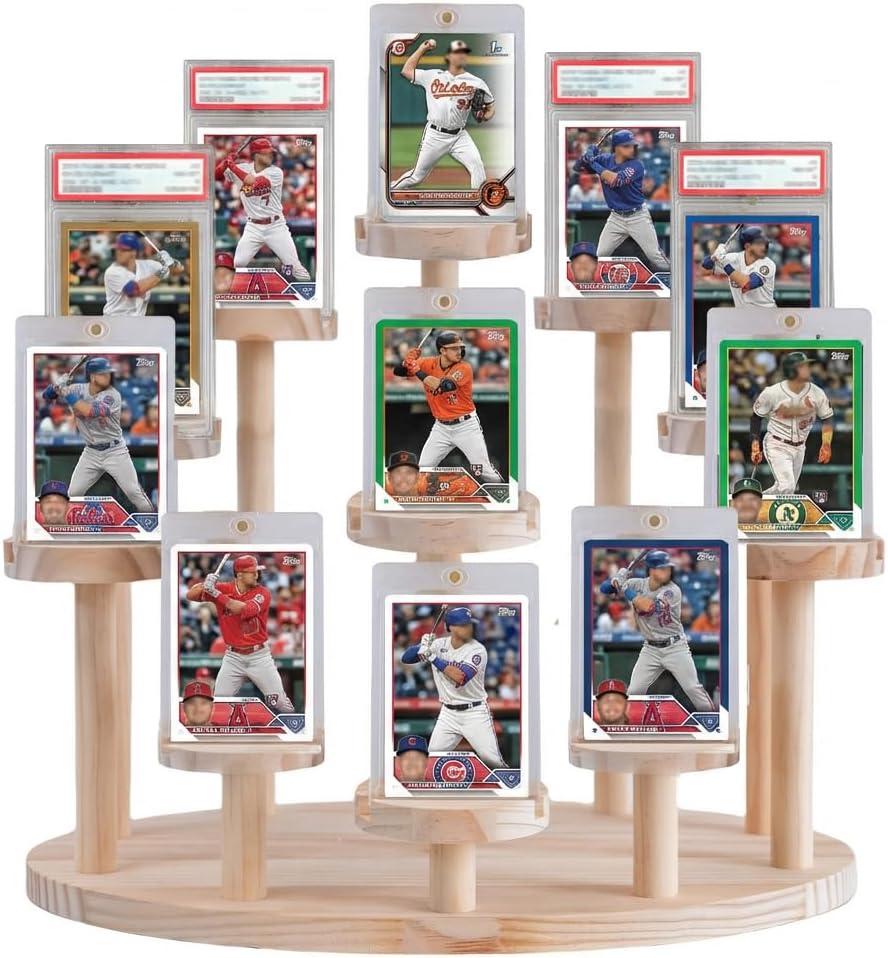 【التوافق العالمي】 يعرض حامل البطاقة الخشبية ما يصل إلى 11 بطاقة تداول ، متوافقة مع 35 حالة مغناطيسية ، ألواح PSA ، بطاقات التداول القياسية ، والبطاقات الرياضية (ملاحظة: غير متوافقة مع 55pt-360pt Magnetic Eass)