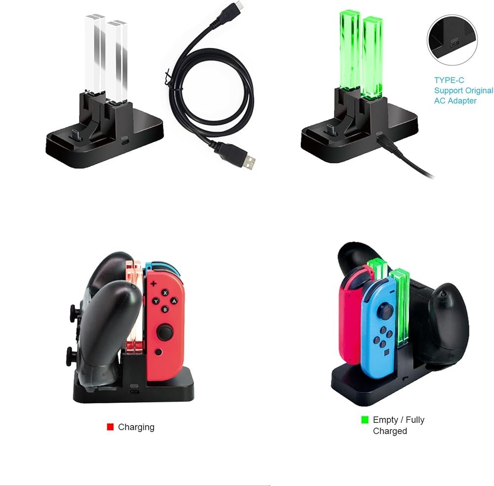 نافور قاعدة شحن وحدة التحكم متوافقة مع نينتندو سويتش، قاعدة شحن متوافقة مع سويتش جوي كون ووحدة التحكم برو مع كابل شحن من النوع سي