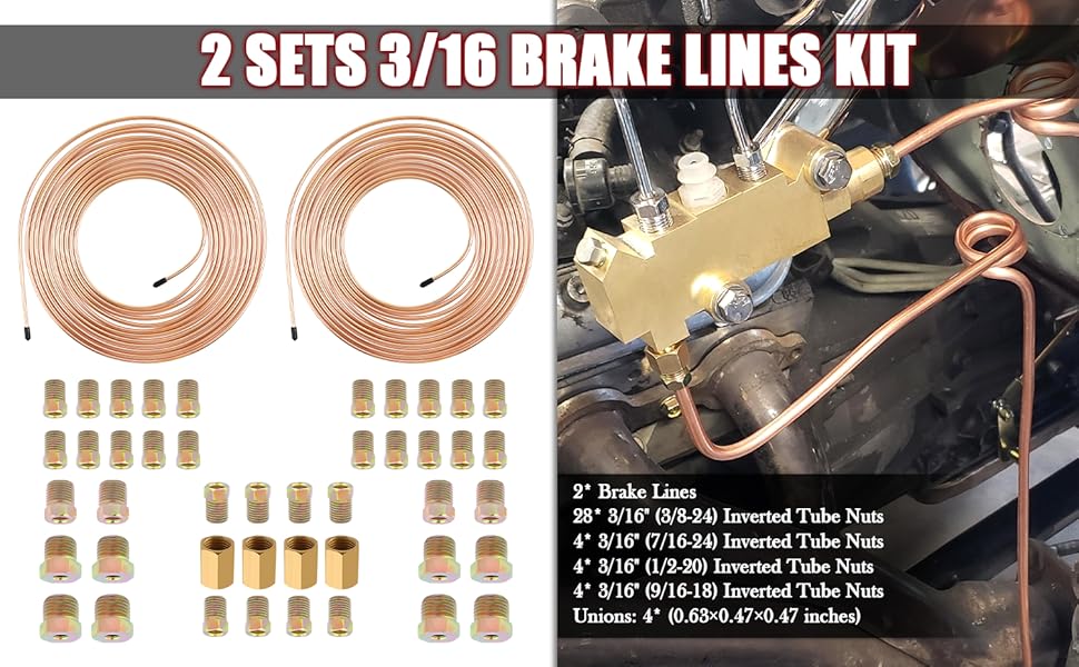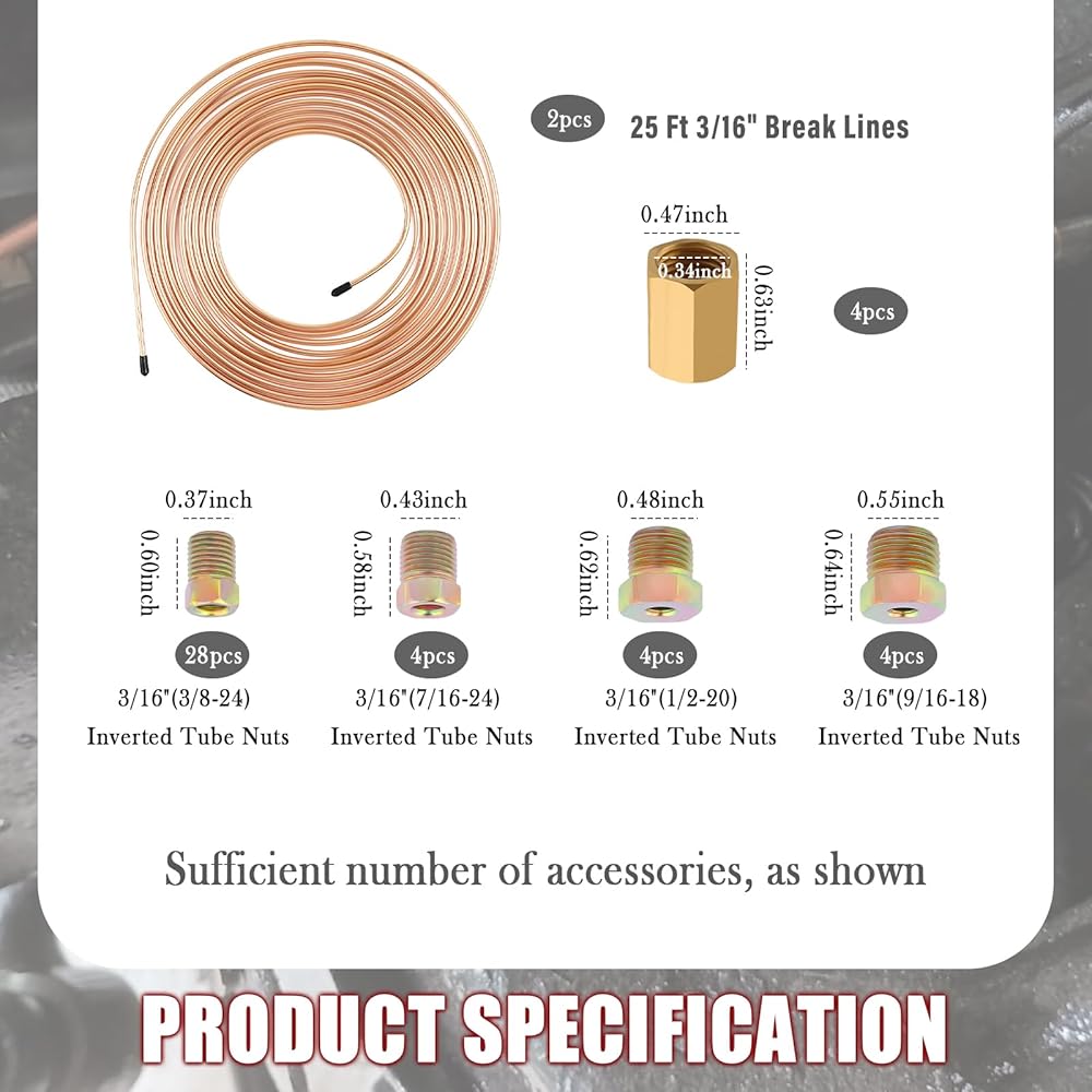 2 مجموعات 3/16 مجموعة خطوط الفرامل ، خط فرامل النحاس مرنة 25 قدمًا 3/16 مع تركيبات خط الفرامل (تجهيزات 32pcs ، 8pcs المكسرات ، ونقابات 4pcs) ، أنابيب نحاسية متعددة الأغراض للفرامل ، وأنظمة الوقود