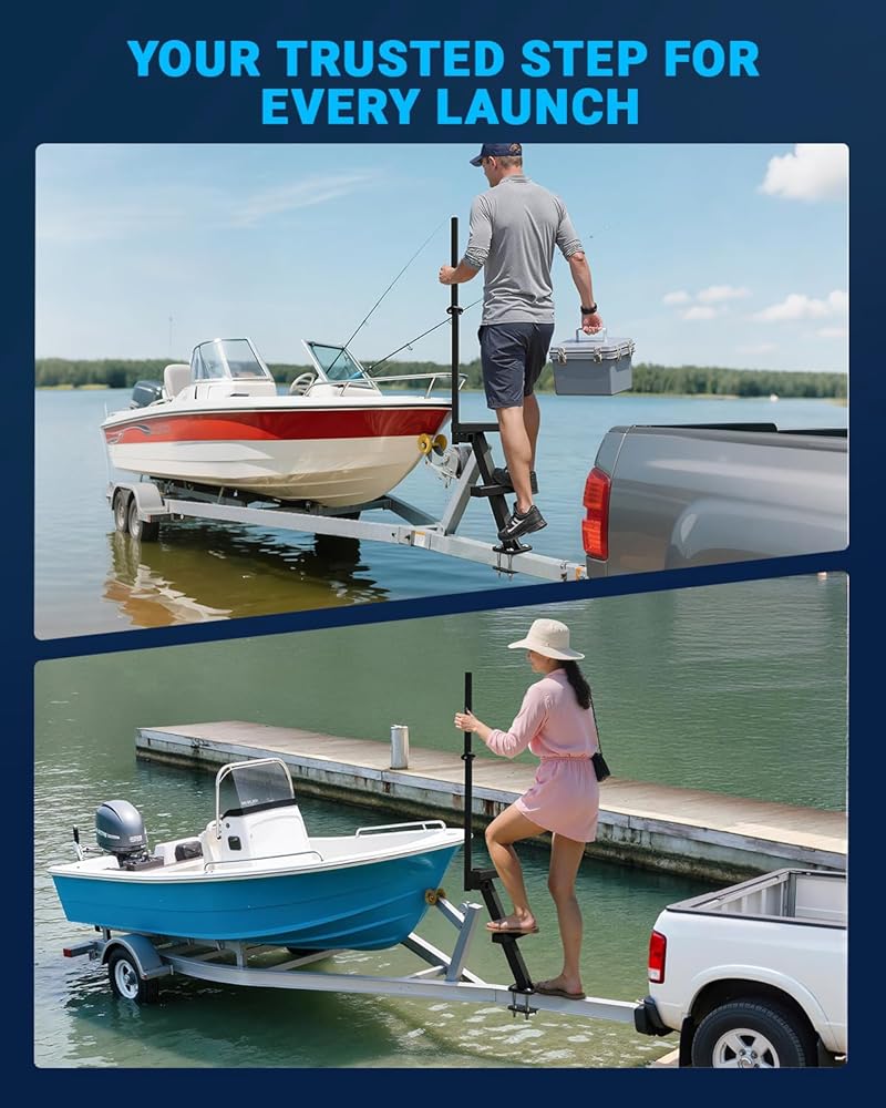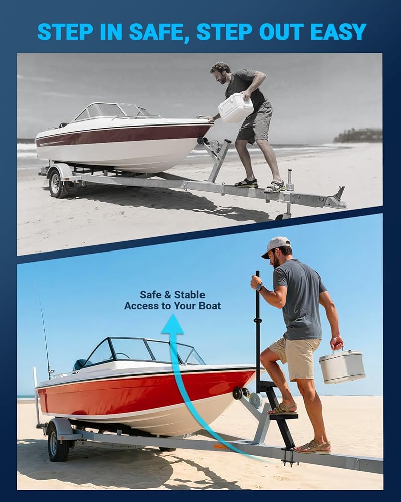 Compact & Ready دائمًا - رفيق إطلاقك الموثوق به ، تظل خطوات مقطورة القوارب هذه مثبتة - لا طي ، لا تمايل ، من السحب والإطلاق والمتنزه ، وتضمن خطواتنا وصولًا سهلاً وموثوقًا لكل مغامرة القوارب.