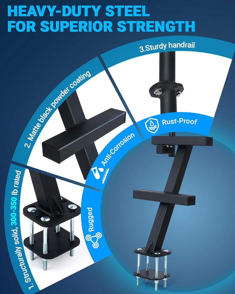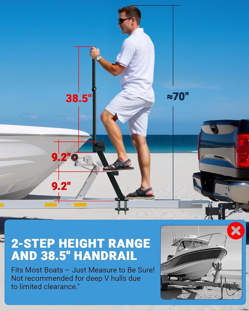 نطاق الارتفاع المثالي من خطوتين-مع ارتفاع الدرابزين 38.5 بوصة وارتفاع من خطوتين ، تناسب خطوات مقطورة القوارب هذه معظم المقطورات مع الحفاظ على سلامة كل فرد من أفراد الأسرة.