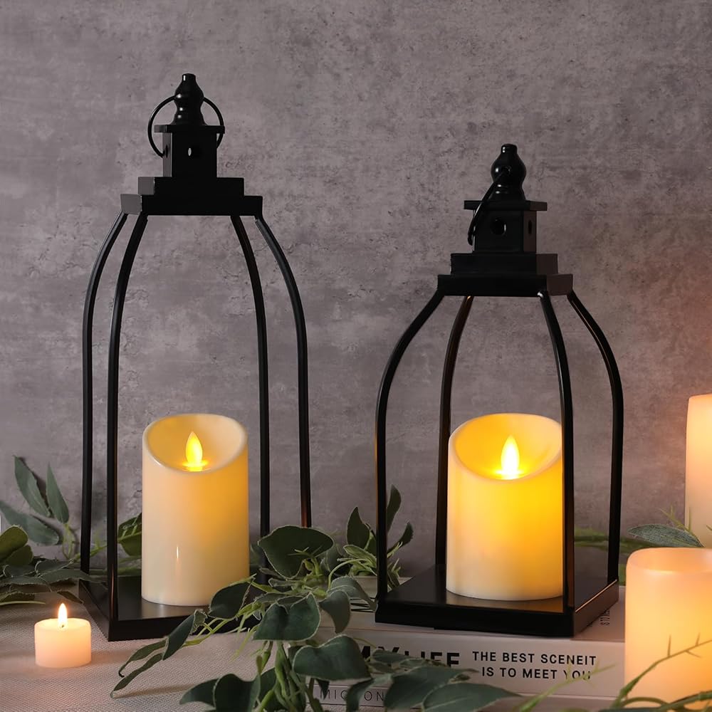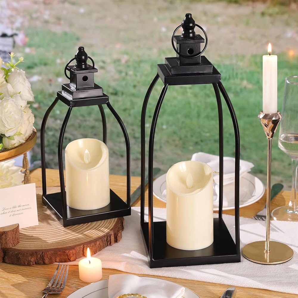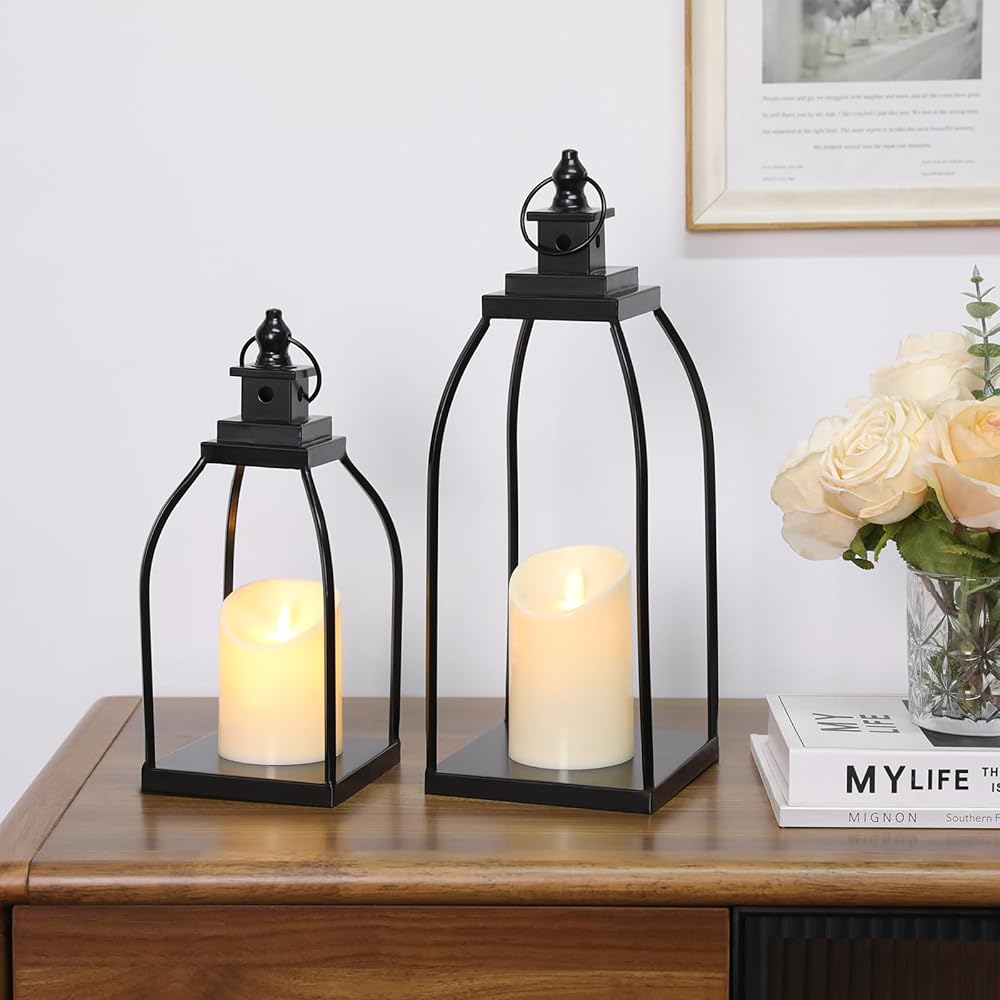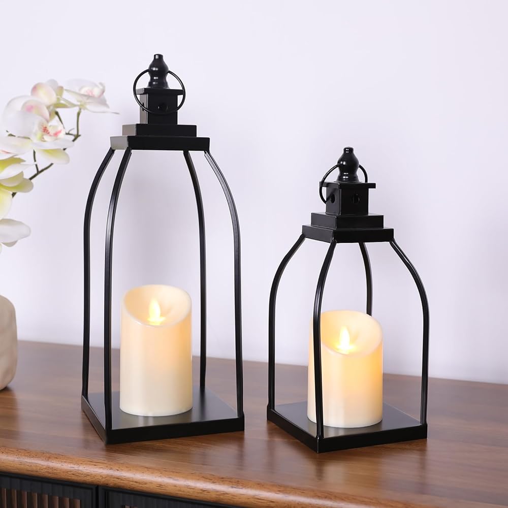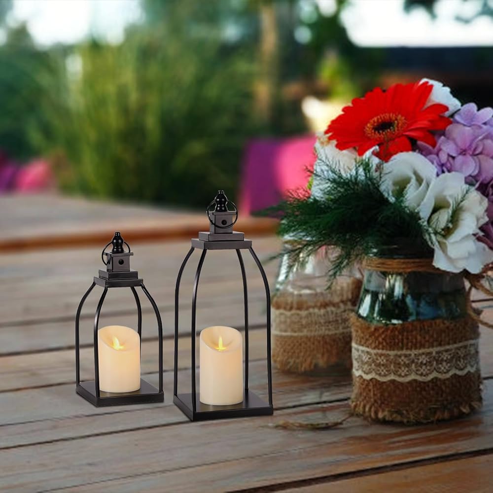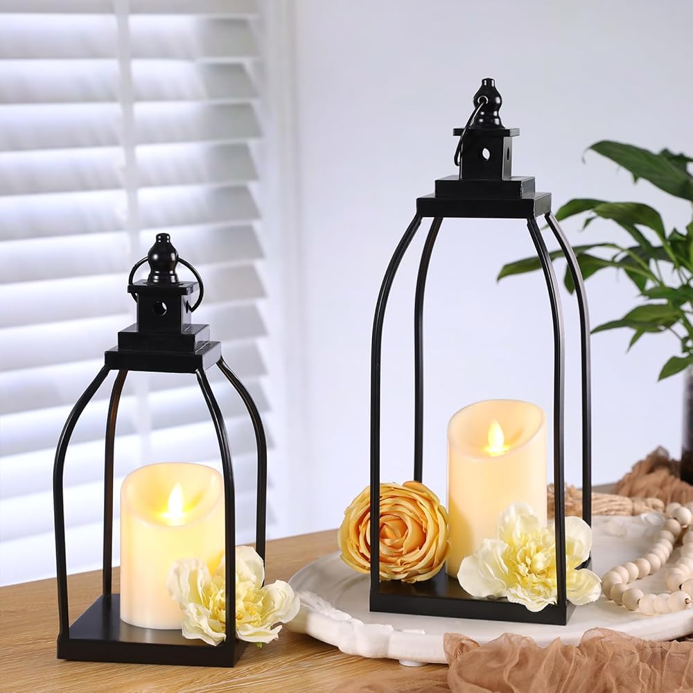 فوانيس الديكور في الهواء الطلق/ الداخلية - مصنوعة من الفوانيس السوداء الزخرفية في الهواء الطلق مصنوعة من إطار معدني قوي ومصمم لتستمر. يتميز بتصميم بسيط ، يتناسب تمامًا مع أي مشهد وأضف لمسة من التطور. يمكنهم بسهولة المزج مع أي منزل وفناء وشرفة وديكور حديقة. ملاحظة: الفوانيس الزخرفية مفتوحة ، بدون زجاج!