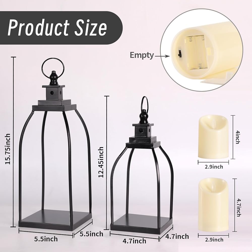 مجموعة شمعة زخرفية مجموعة - ستحصل على فوانيين شموع مزرعة حديثة مع شموعين ، وحجم واحد كبير لحامل الفوانيس هو 5.5 × 5.5 × 15 بوصة ، وحجم حامل الفوانيس الصغير 4.7 × 4.7 × 12 بوصة. إنها نمط بسيط ، يمكنك أيضًا إضافة زخارف حول الشموع لما تحب ، وهي لمسة لطيفة للقطاعات المركزية الخاصة بك على الطاولات.